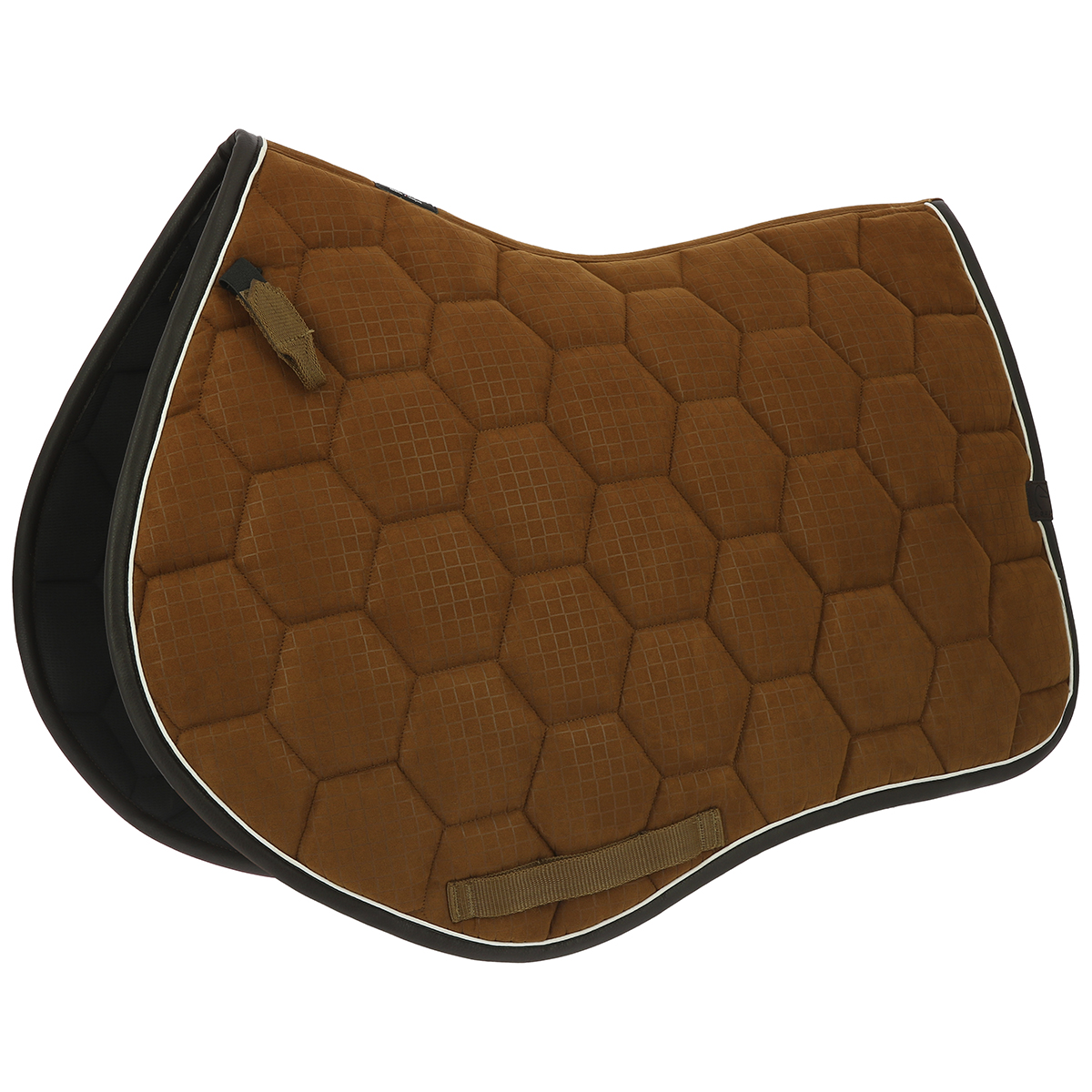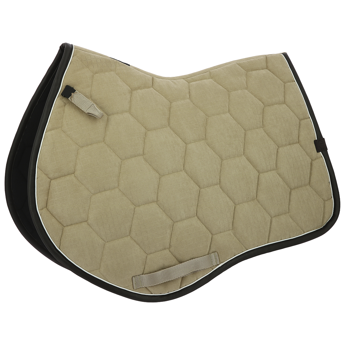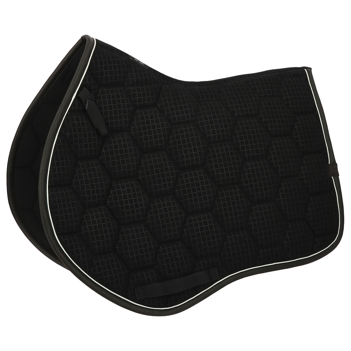 Очень красивый универсальный вальтрап (All-Purpose Saddle Pad) анатомической формы. Дышащая сетчатая подкладка гарантирует превосходное поглощение влаги. Наполнитель из полифила и пены делают вальтрап объемным, что очень важно для амортизации. Тисненый клетчатый узор и шестиугольная простежка. Внешняя отделка из искусственной кожи с тонким атласным белым шнуром. Петли на липучках.