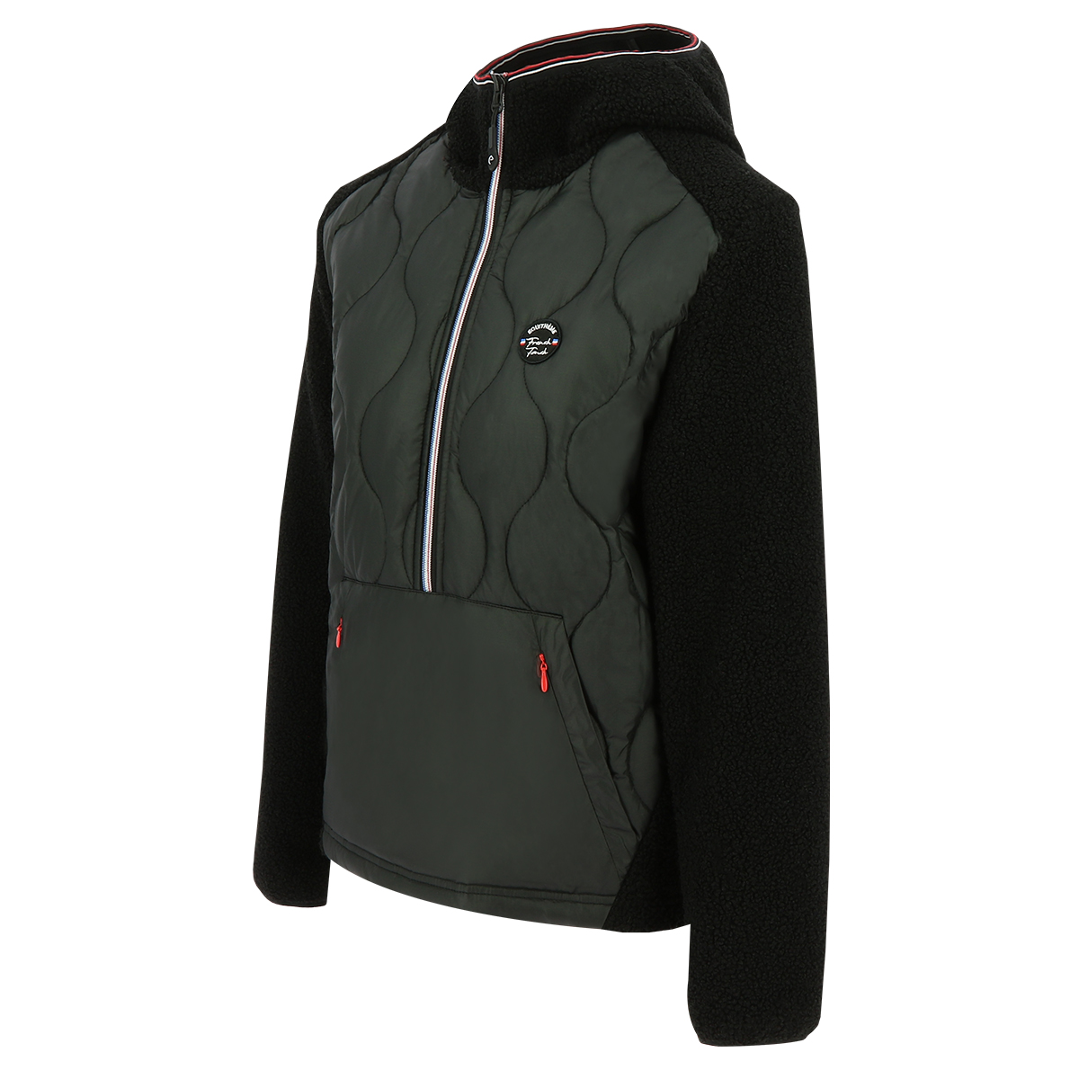 Теплая куртка анорак (jacket) с капюшоном. Прямой крой. Выполнена из плотного полиэстра, стеганого на груди, который защищает от ветра и осадков. Хорошо сохраняет тепло. Плотный капюшон защитит от прохладной погоды. На рукавах и по капюшону эластичные резинки. Куртка на 3/4 застегивается на молнию. Карман-кунгуру и два дополнительных кармана на замке.