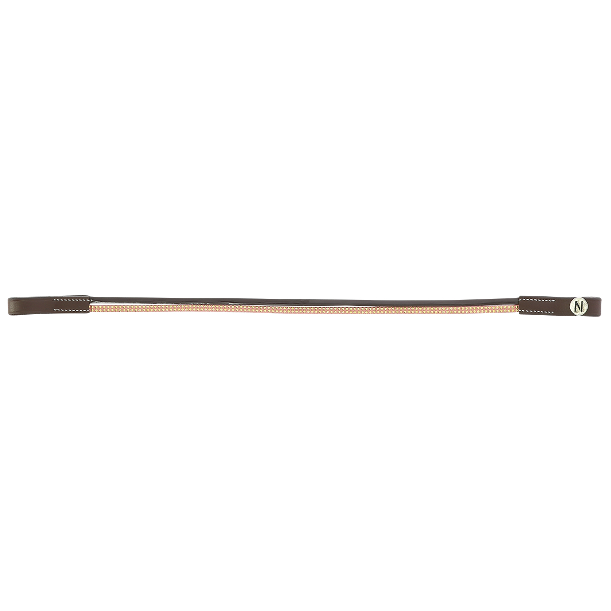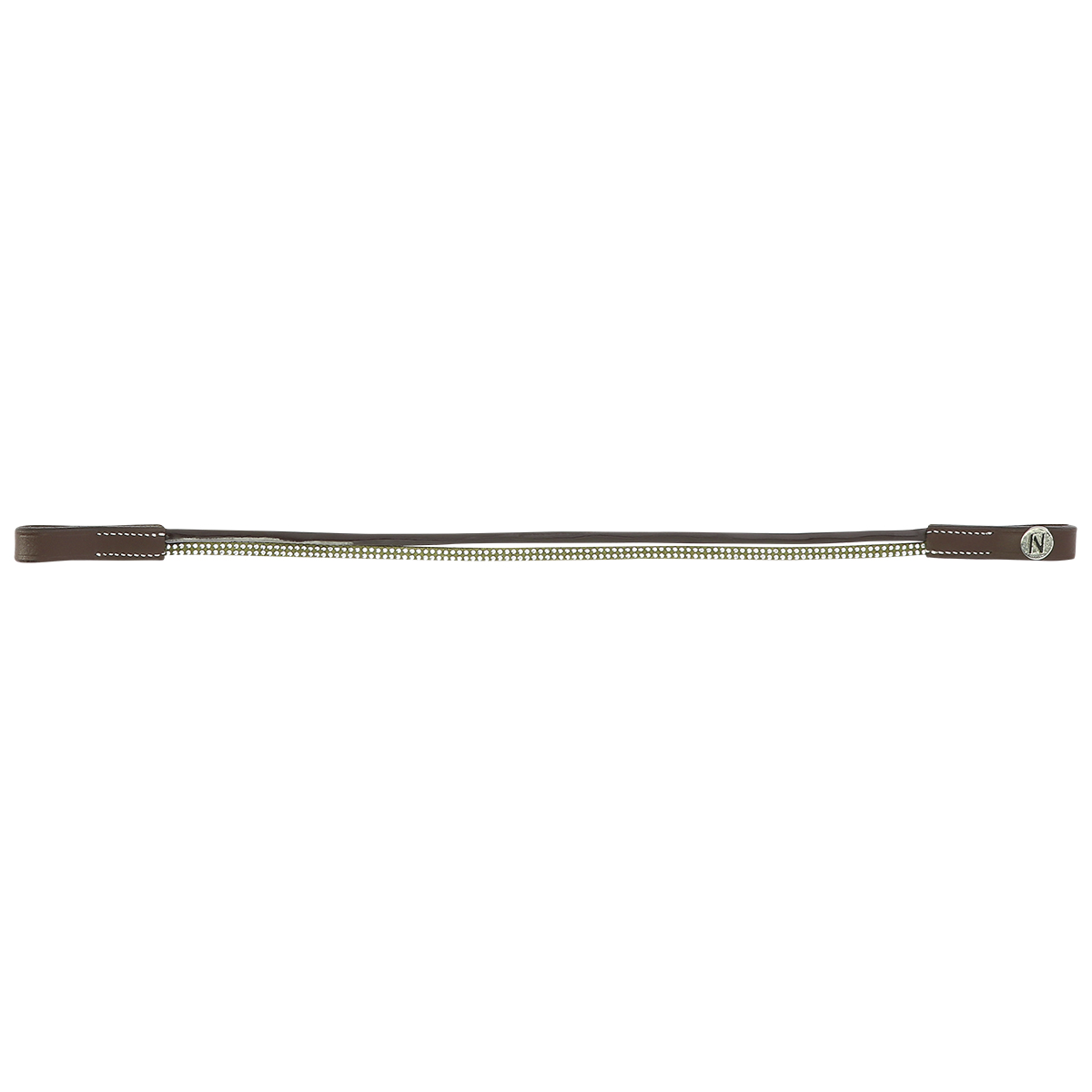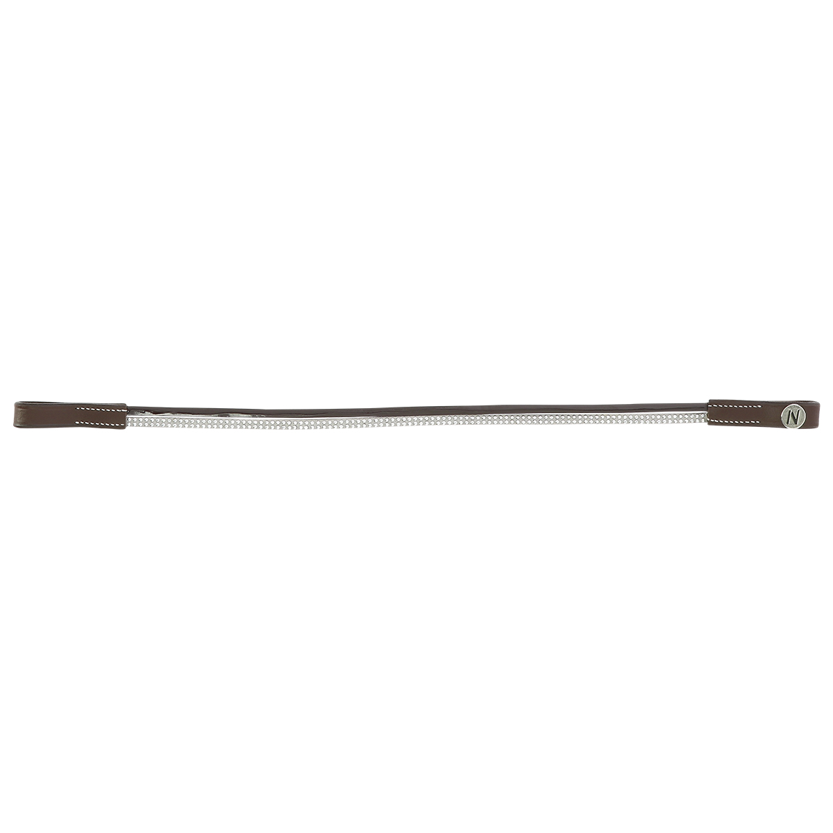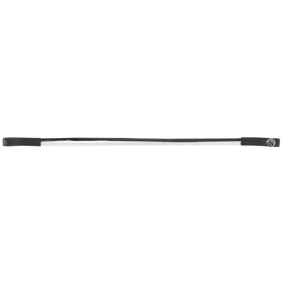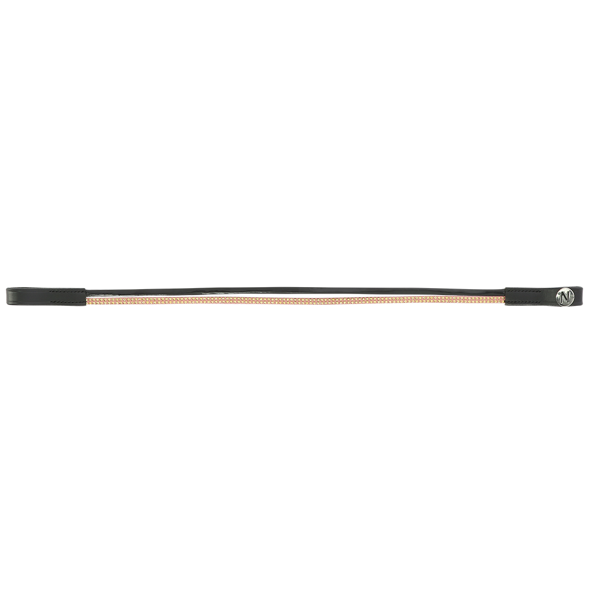 Налобник из кожи буйвола с двумя ремнями: один из полиуретана с эффектом лакированной кожи, другой из полиэстера. Украшен стразами. Длина - 42 см.