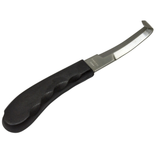 Нож копытный с двухсторонним загнутым лезвием и пластиковой рукояткой.