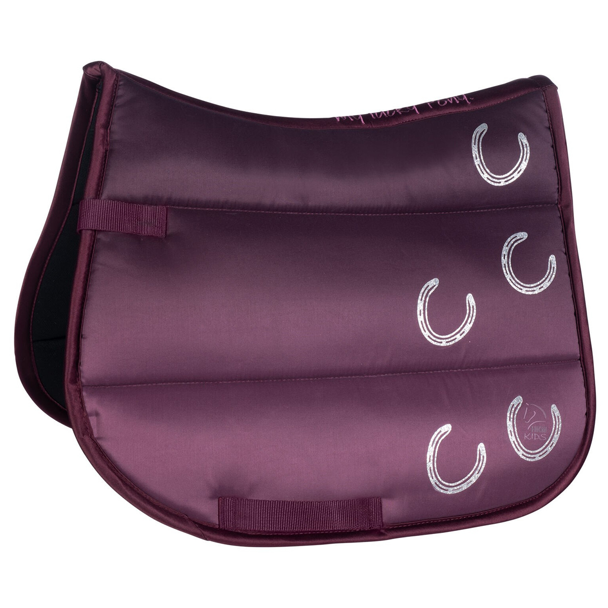 Вальтрап (Saddle Pad) анатомической формы для пони. Красивая расцветка с градиентом, украшен принтом в виде подков и вышивкой на спинке. Крепится на петли на "липучке". Дышащая сетчатая подкладка гарантирует превосходное поглощение влаги. Плотный наполнитель делает вальтрап объемным, что очень важно для амортизации. Вальтрап хорошо держит форму и легок в уходе. Крепится на липучки.
