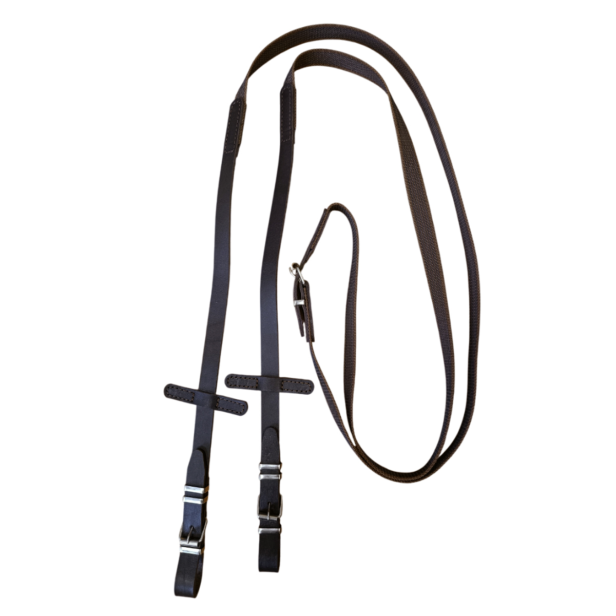 Прорезиненный повод с кожаными ограничителями.