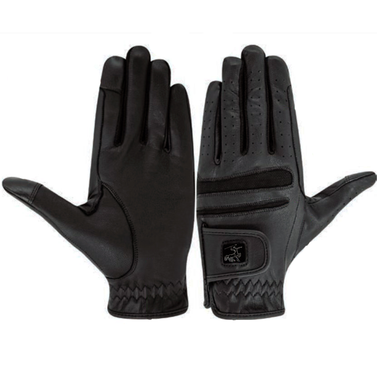 Тонкие и прочные перчатки для верховой езды (riding gloves) из мягкой натуральной кожи с эластичными сетчатыми вставками на тыльной стороне. Перчатки хорошо облегают руки, не стесняя движений. Имеют специальные вставки на большом и указательном пальцах, которые позволяют легко пользоваться гаджетом без ограничений. Они не царапают экран, поэтому их применение безопасно. Застегиваются на липучку в области запястья. С усилением в области указательного пальца.