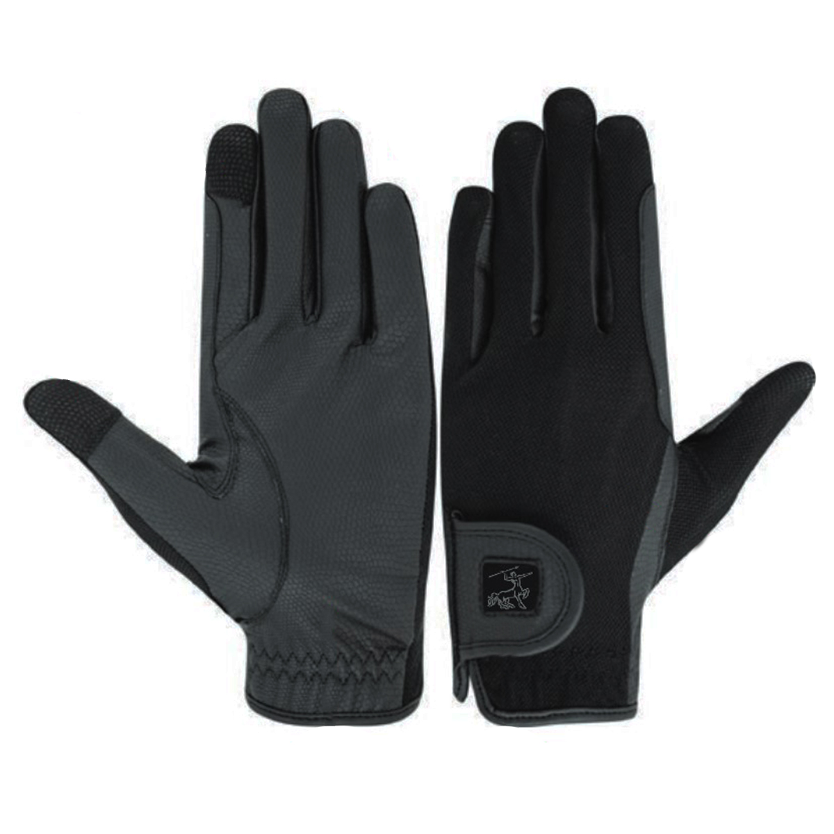 Тонкие дышащие перчатки для верховой езды (riding gloves) из полиуретановой кожи с эластичными вставками на тыльной стороне. Перчатки хорошо облегают руки, не стесняя движений. Имеют специальные вставки на большом и указательном пальцах, которые позволяют легко пользоваться гаджетом без ограничений. Они не царапают экран, поэтому их применение безопасно. Застегиваются на липучку в области запястья. С усилением в области указательного пальца.