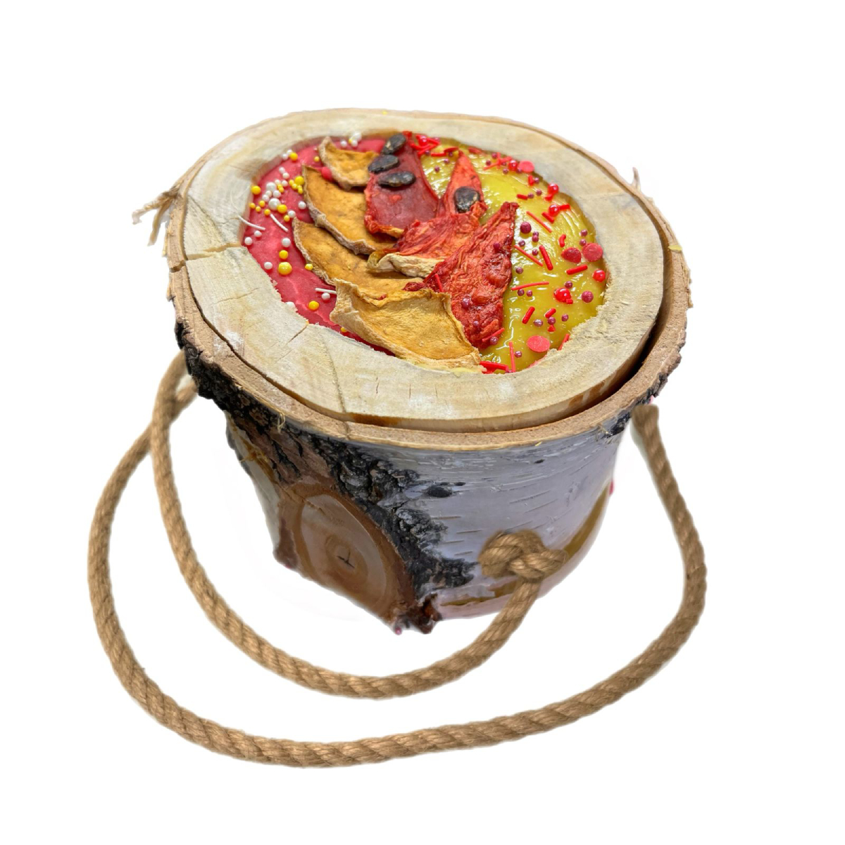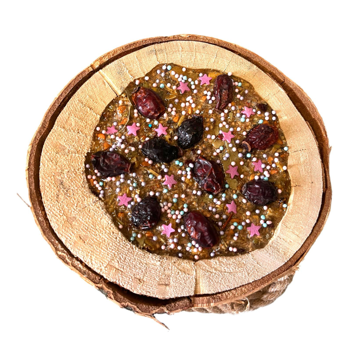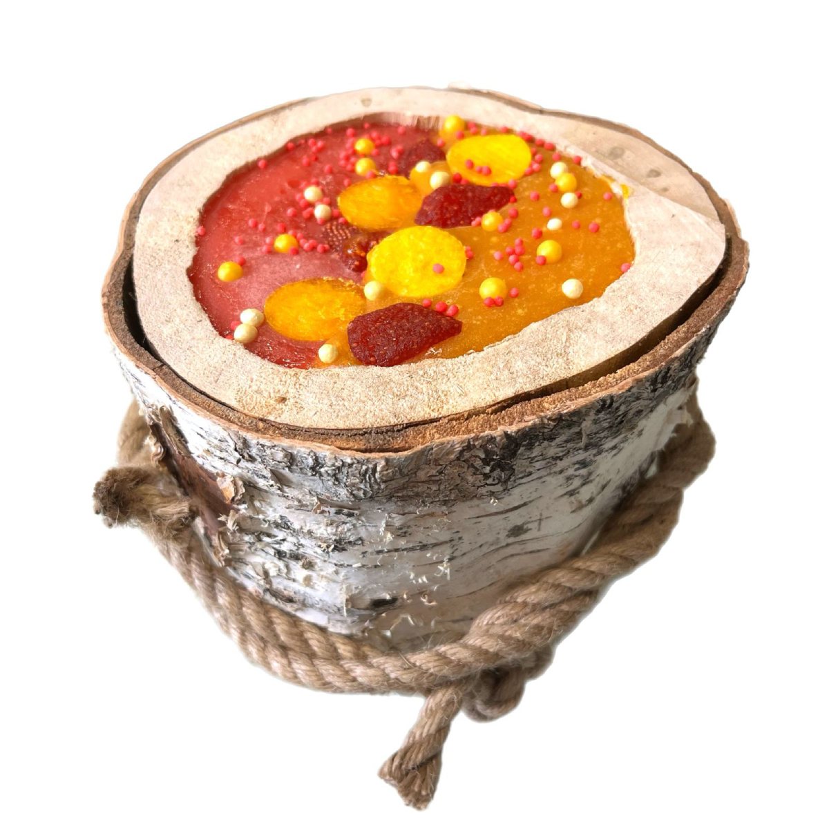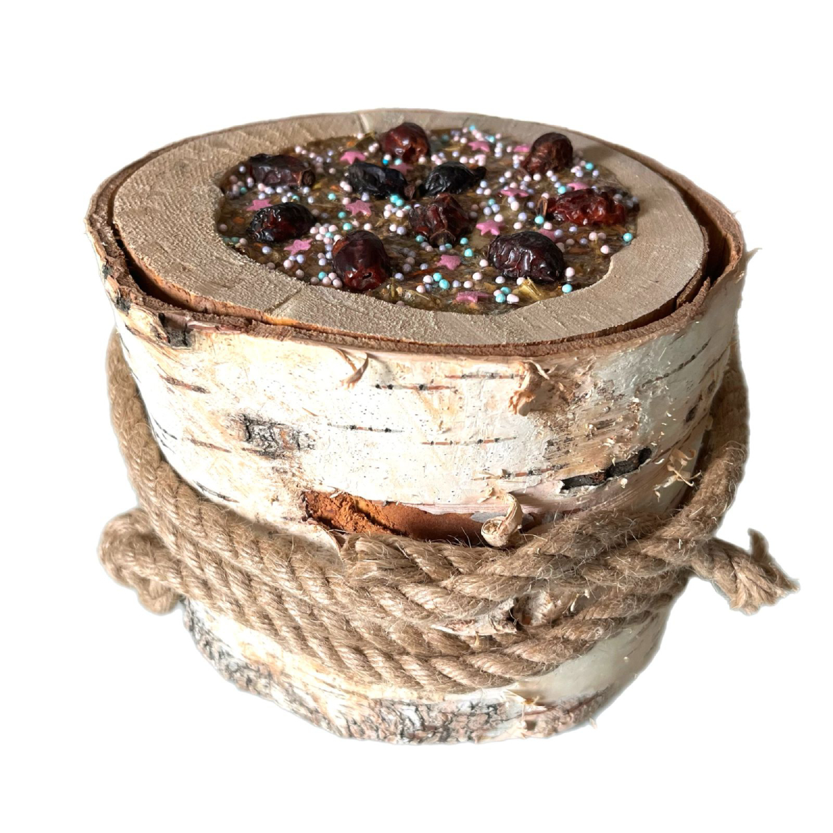 Комплектация: 1 березовое бревнышко с лизунцом и джутовой веревкой.