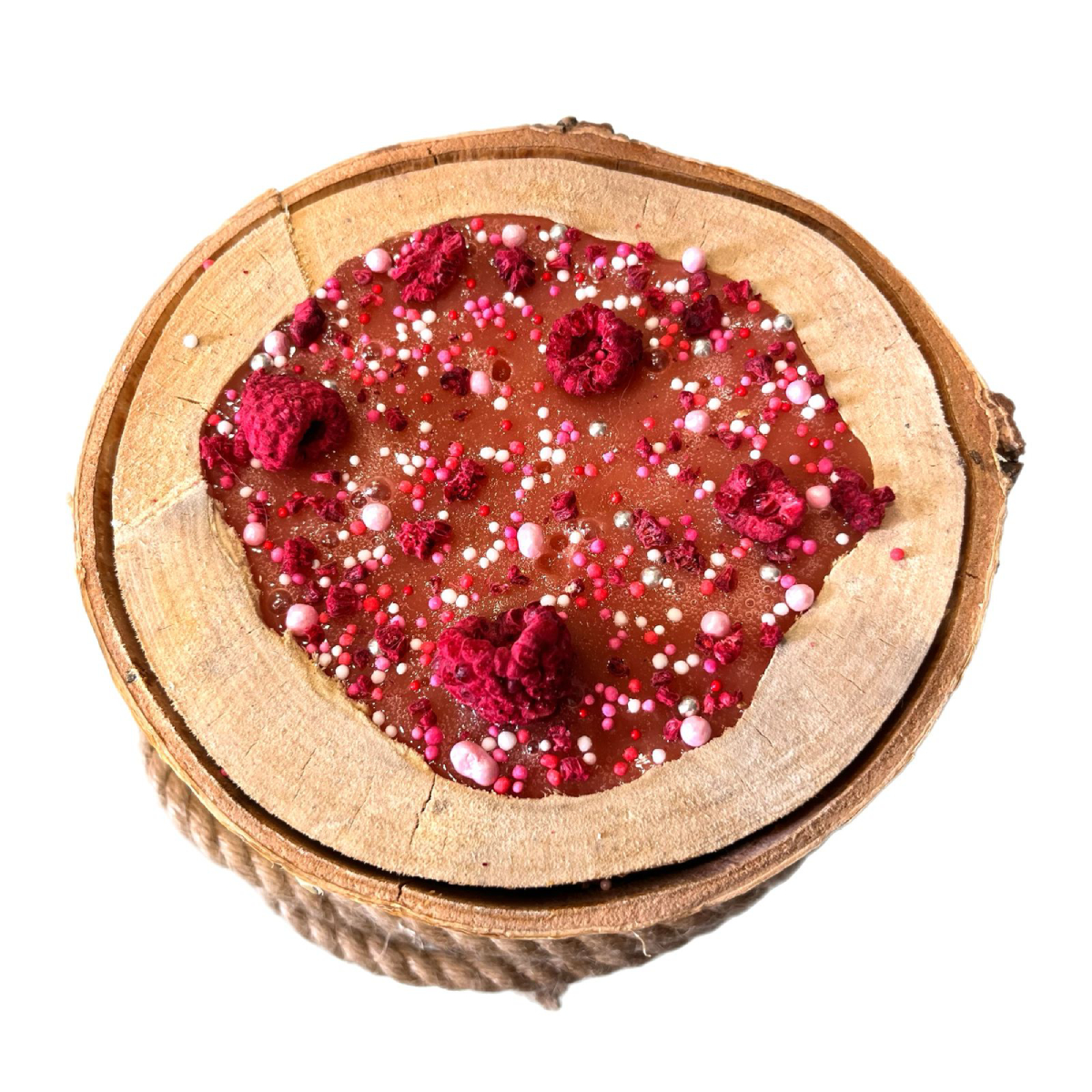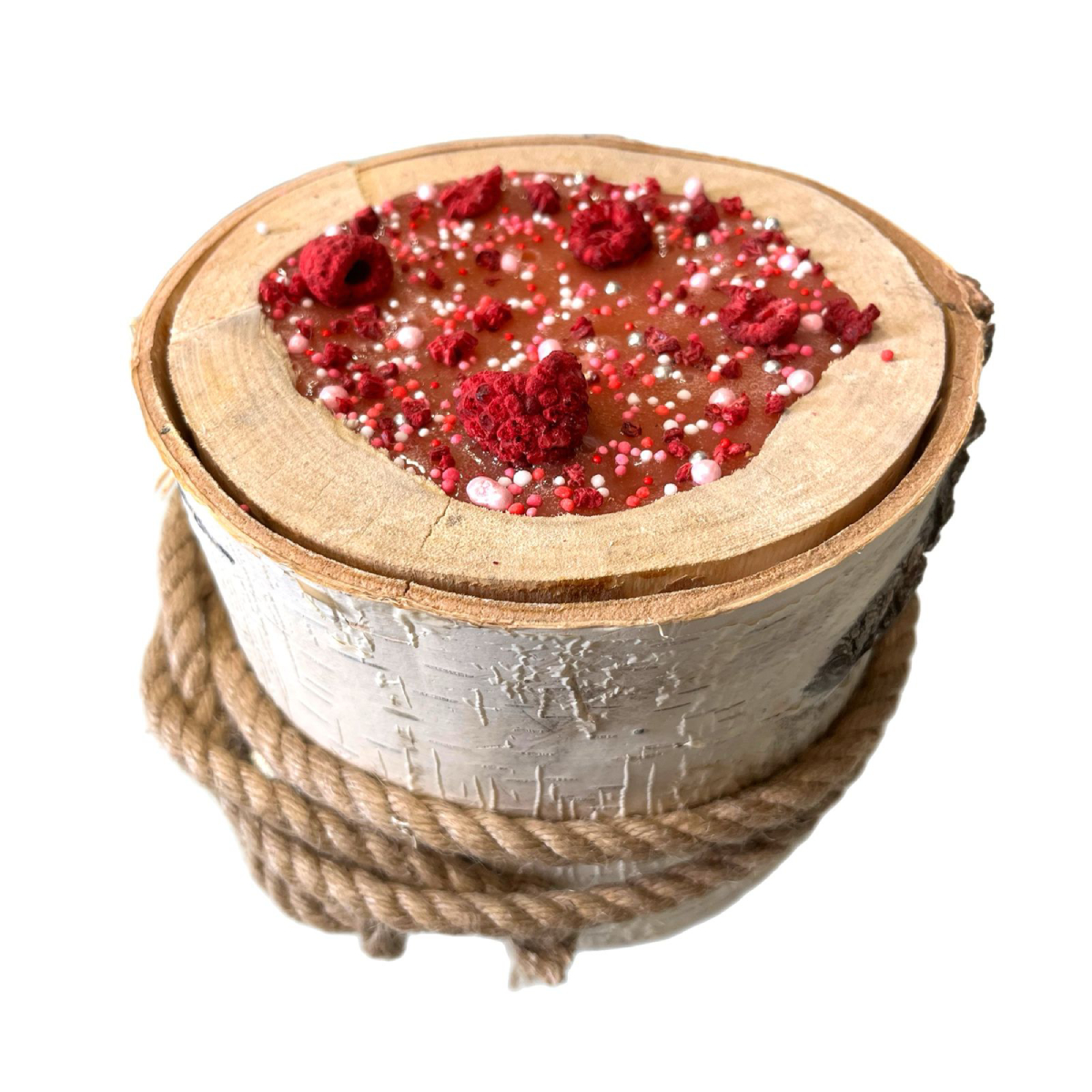 Состав: сахар, малиновый сироп (малина, вода, стевия), сушеная малина, ванильный сироп (ваниль, вода, стевия), кукурузный крахмал, кондитерская посыпка.