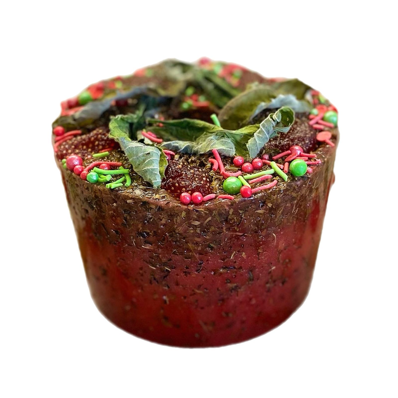 Состав: сахар, клубничный сироп, мята перечная, цукаты из клубники, кукурузный крахмал, сахарная посыпка (сахар, кукурузный крахмал, натуральные красители).