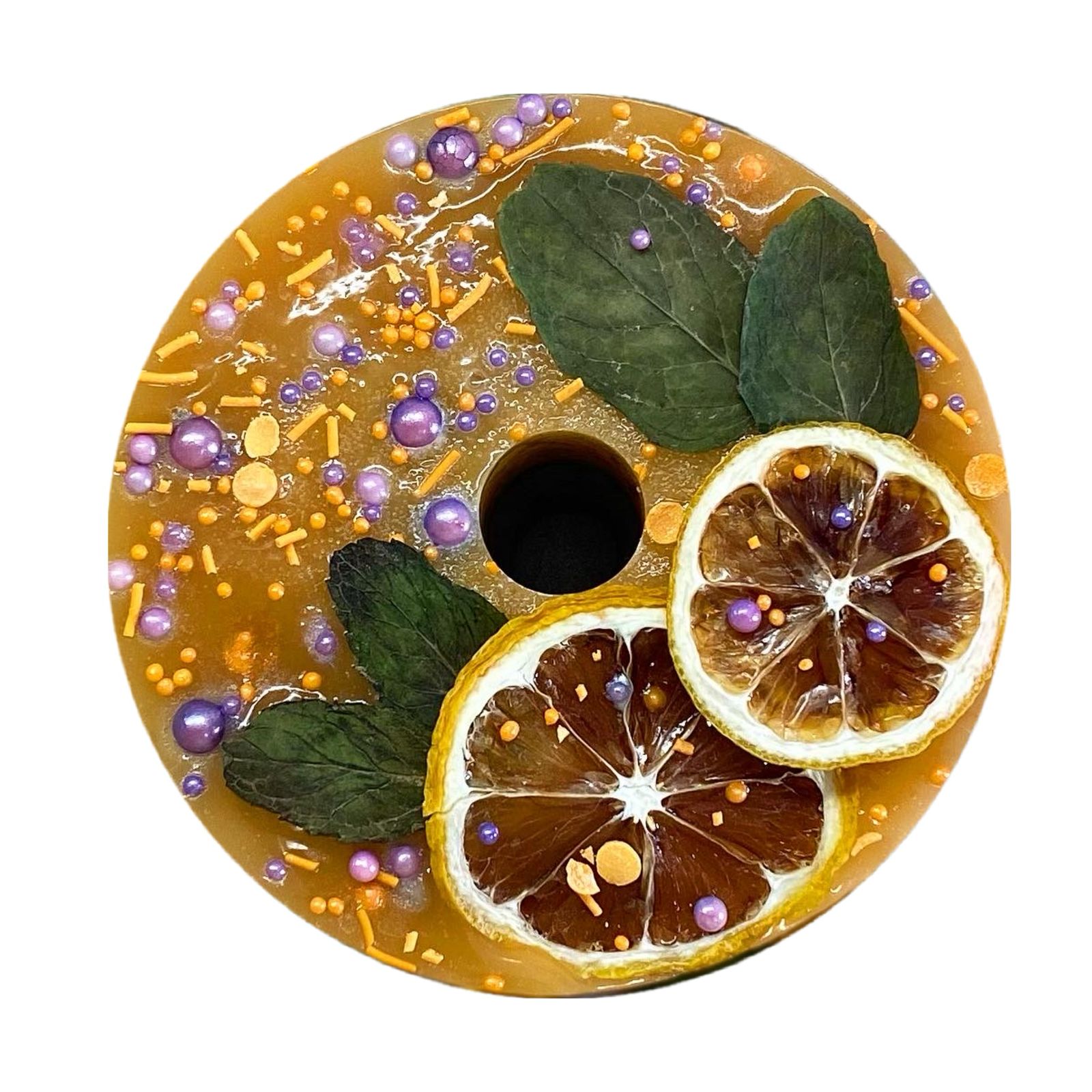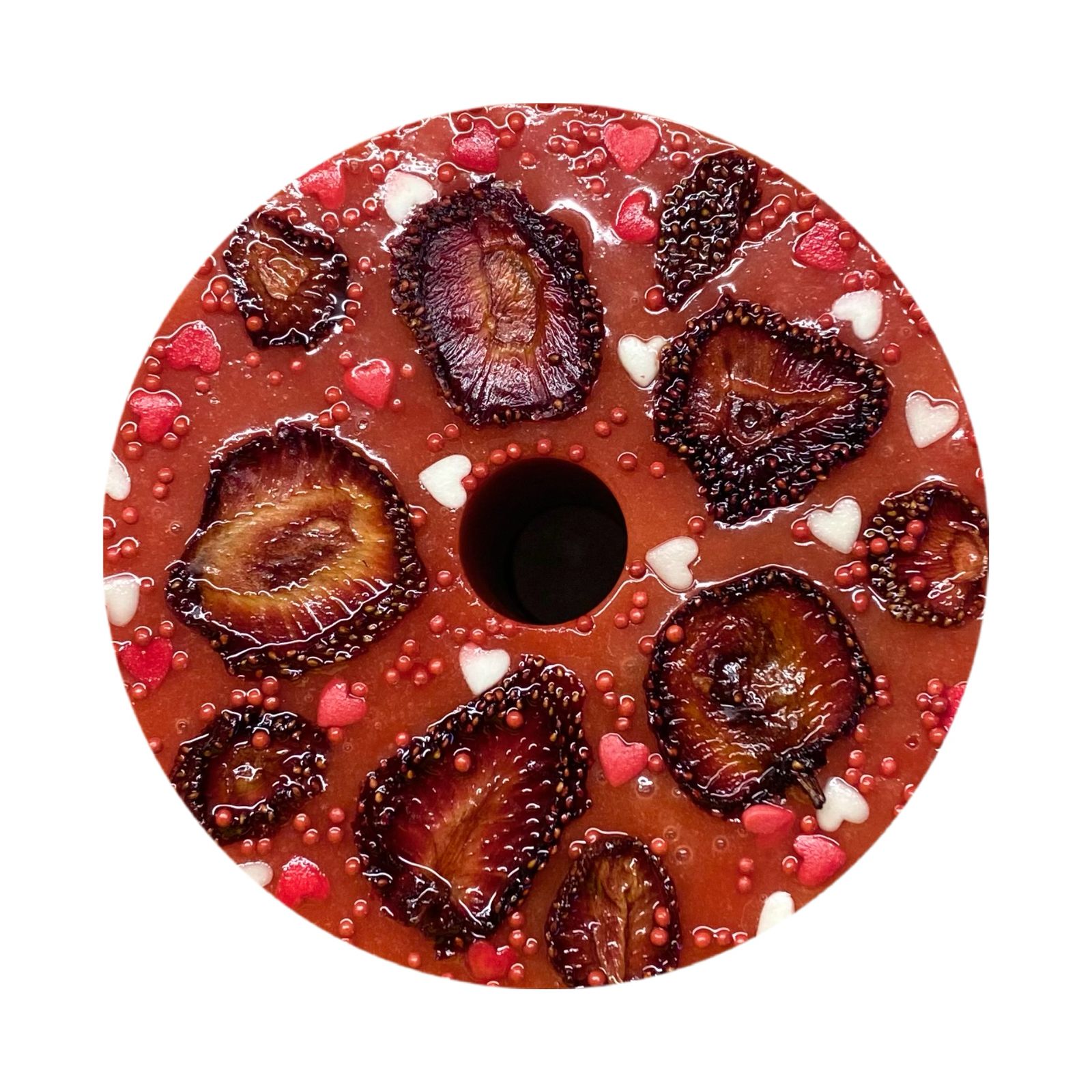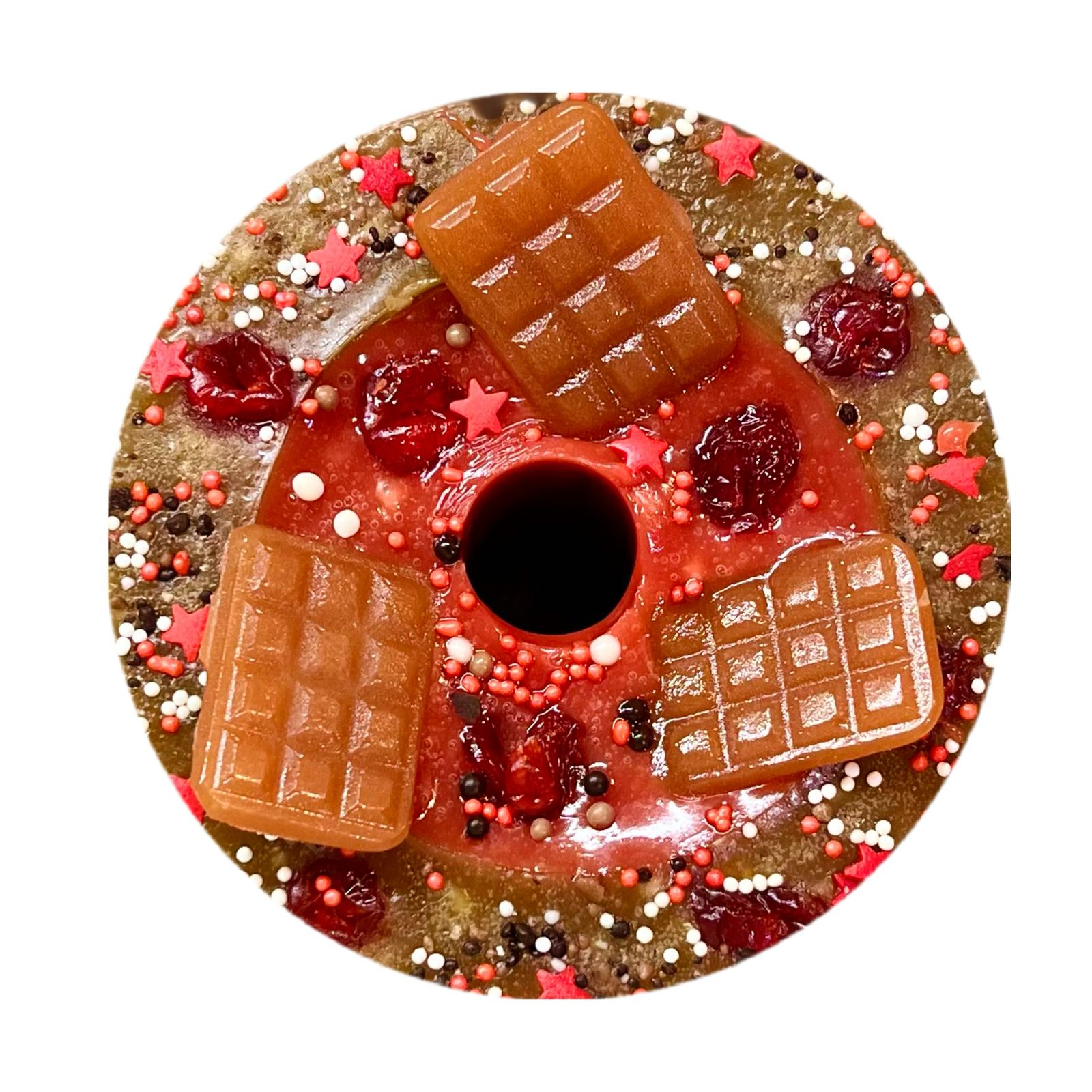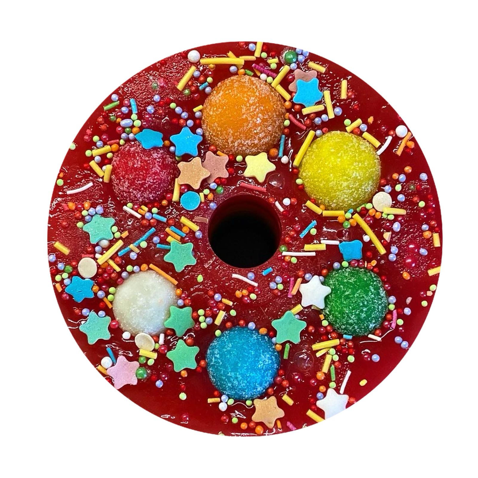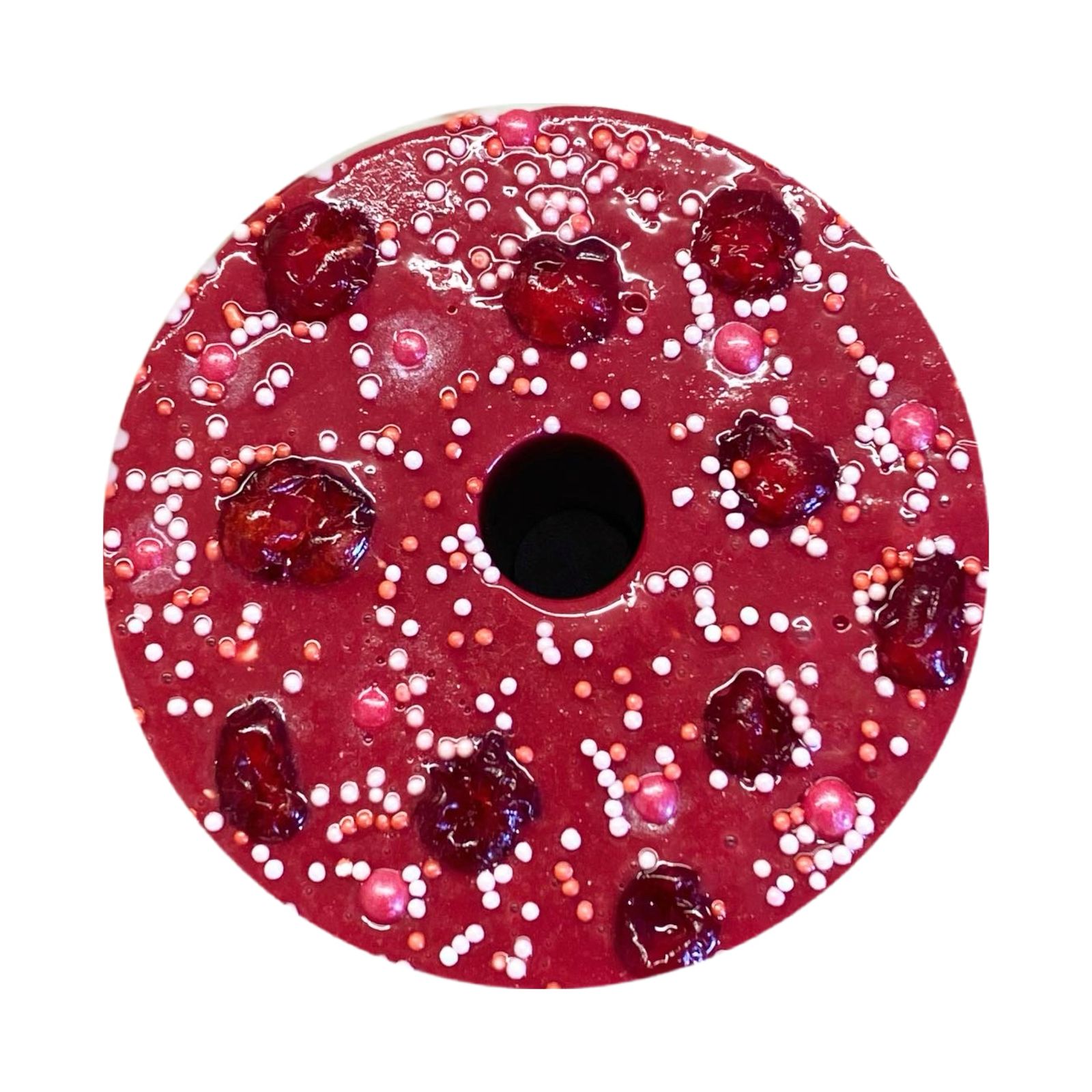 Большая круглая конфета с грушей и свеклой.Подходит под держатель для круглого ликита.