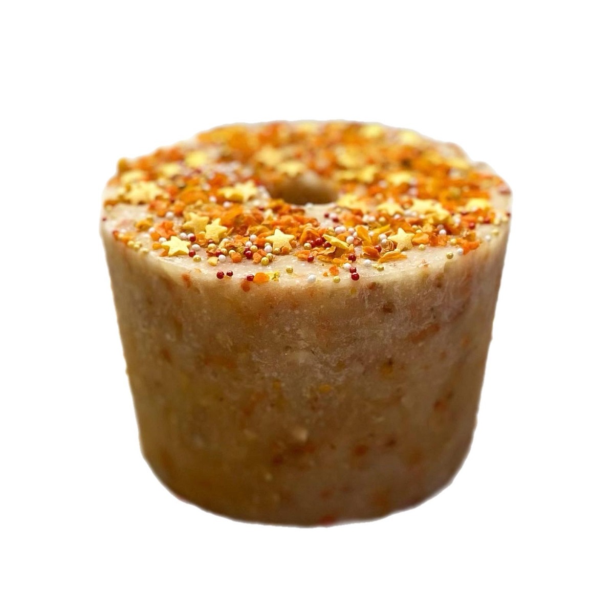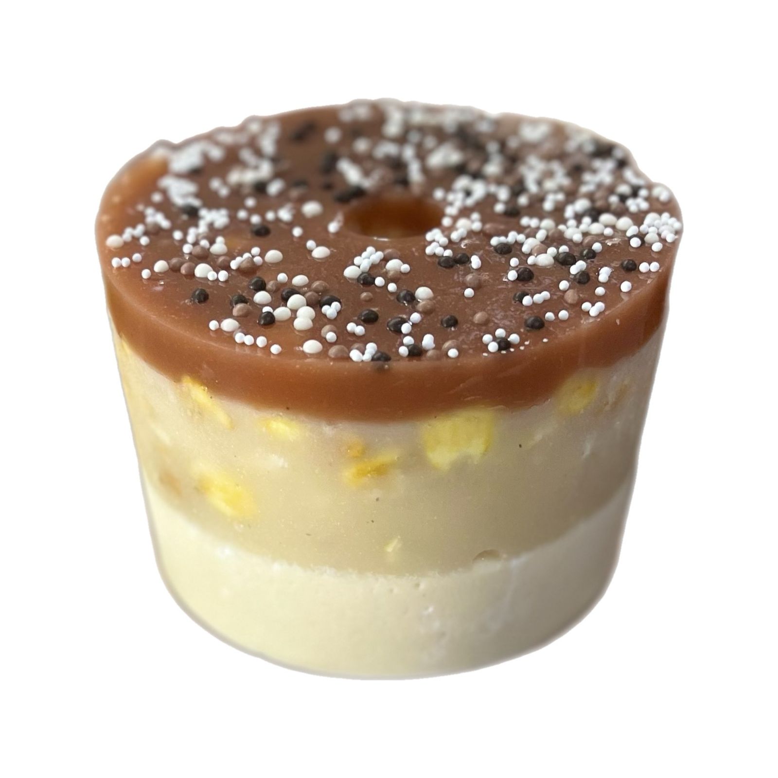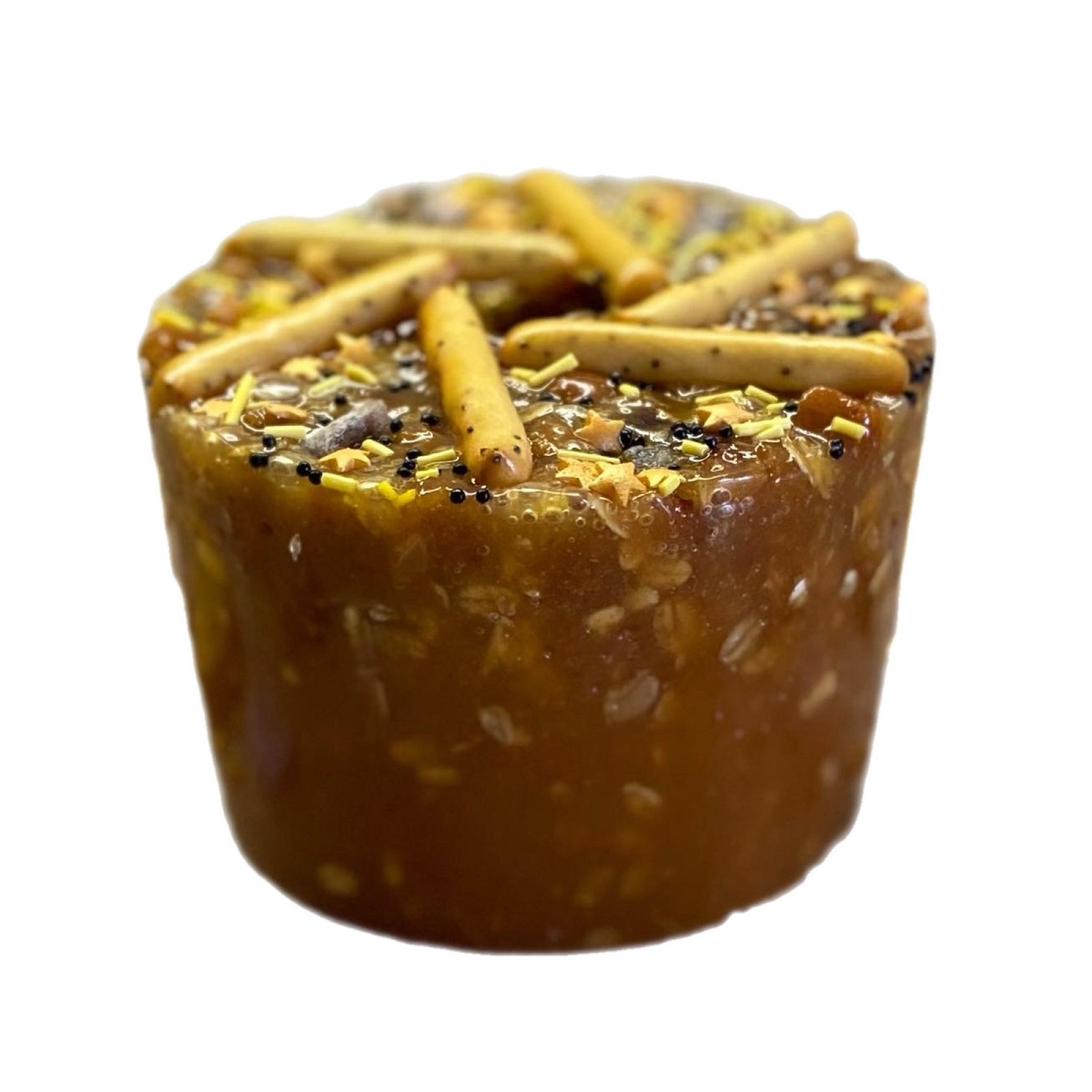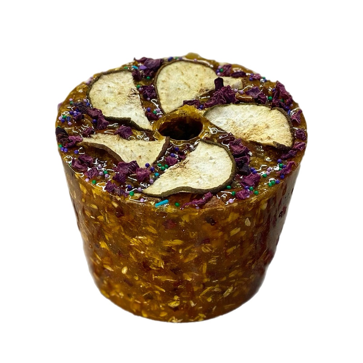 Двухслойная, вкусная и полезная конфета для вашей лошади. Верхний слой - облеприховый, нижний - со вкусом смородины. Сверху - чипсы лимона и посыпка.
