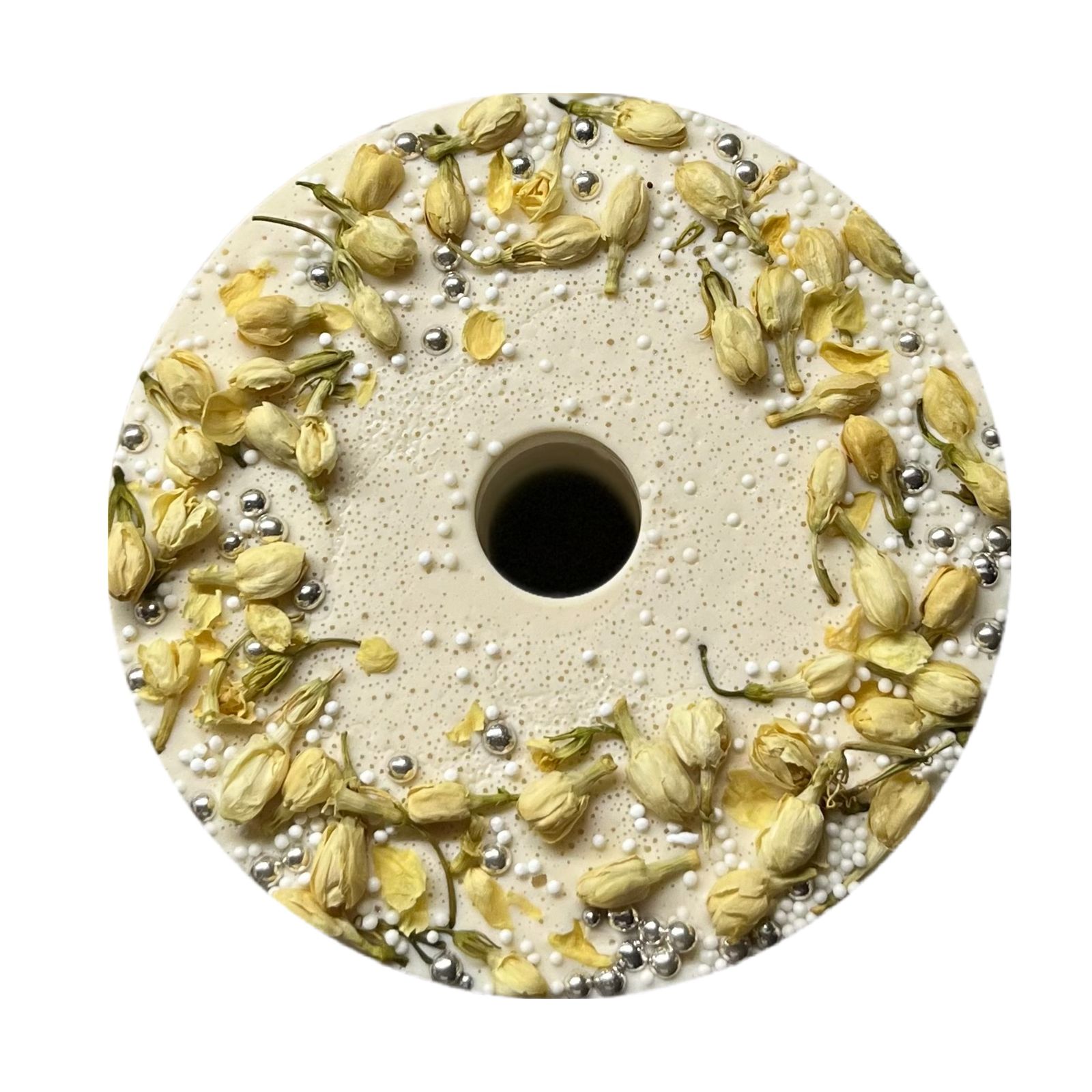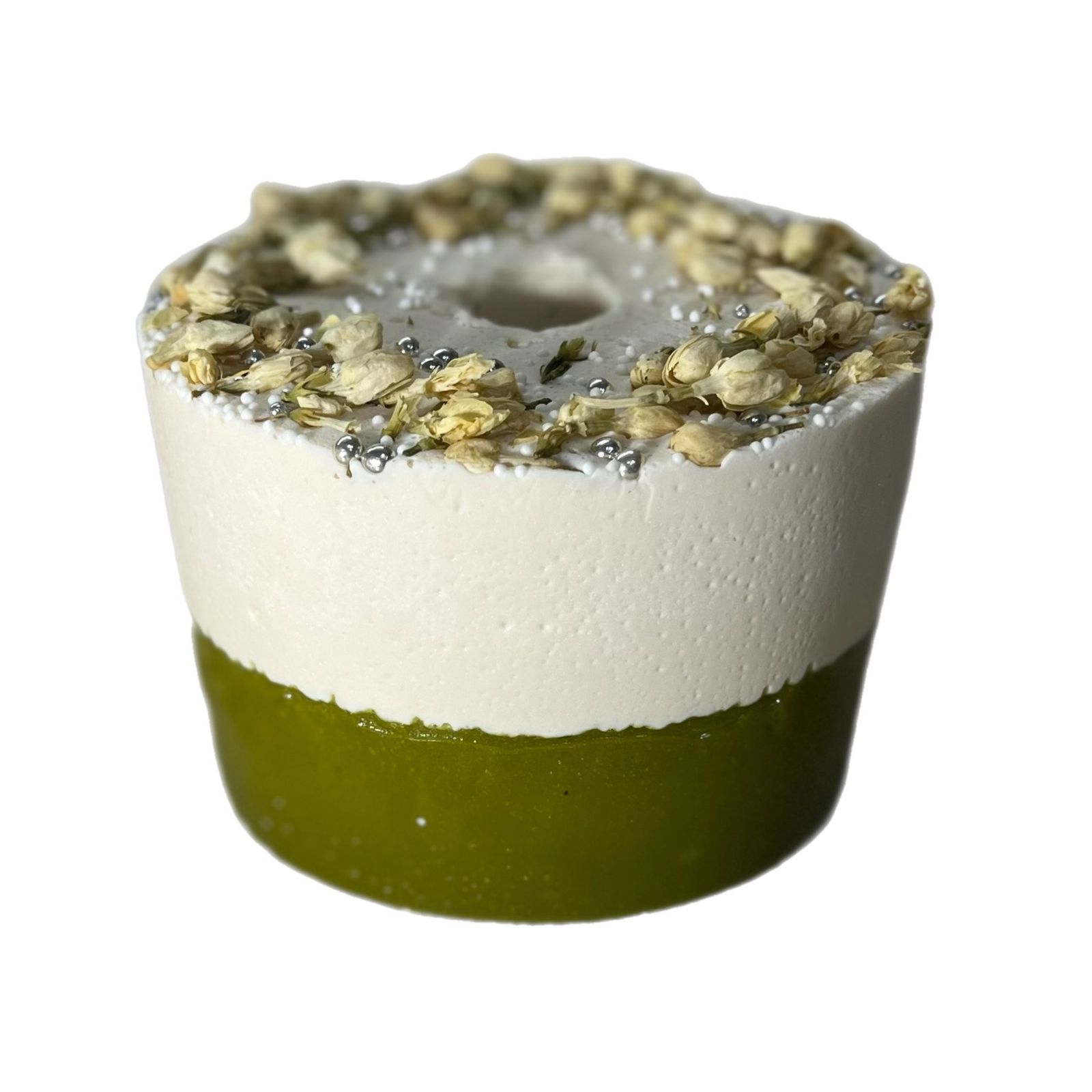 Состав: сахар, сироп жасмина, матча зеленая, сушеные цветки жасмина, кукурузный крахмал, сахарная посыпка (сахар, кукурузный крахмал, натуральные красители).