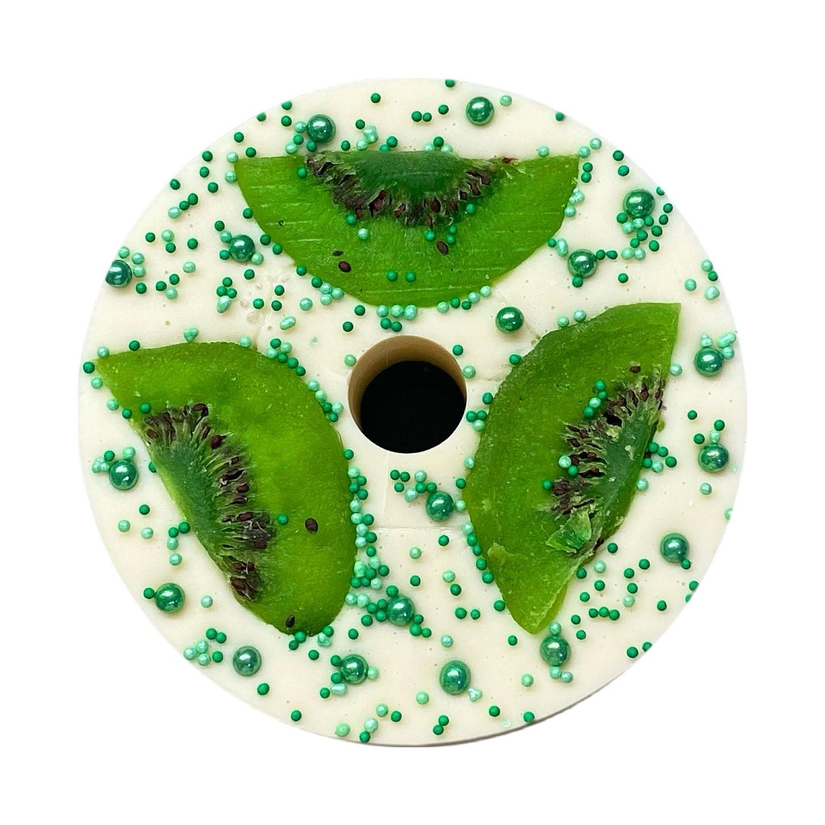 Состав: сахар , сироп из киви (киви, вода, стевия), кокосовый сироп (кокос, вода, стевия), цукаты из киви, вода, кондитерская посыпка (сахар, кукурузный крахмал, растительное масло, натуральные красители).