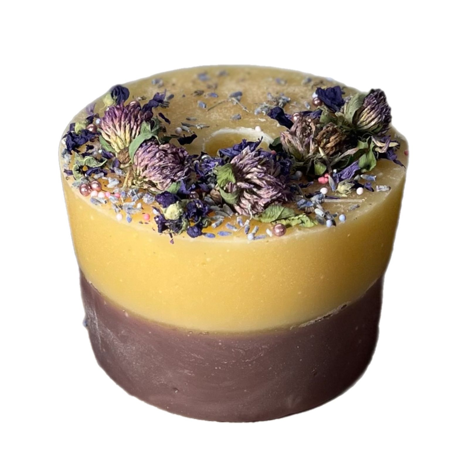 Вкусное двухслойное лакомство с натуральным сиропом и сушеными цветками лаванды.