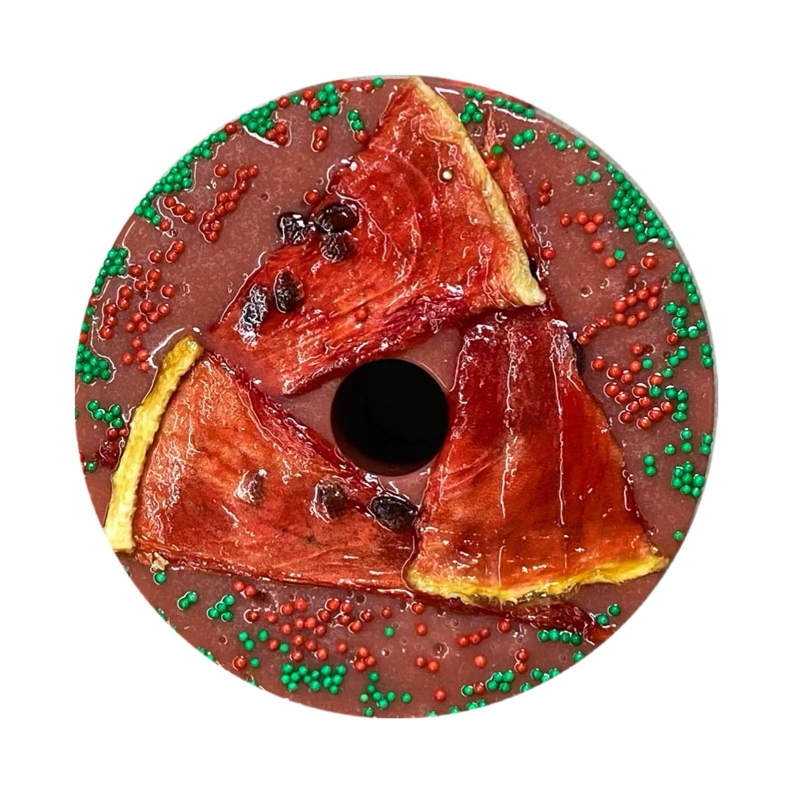 Без овса, конфета сварена на основе арбузного сиропа и украшена арбузными чипсами.
