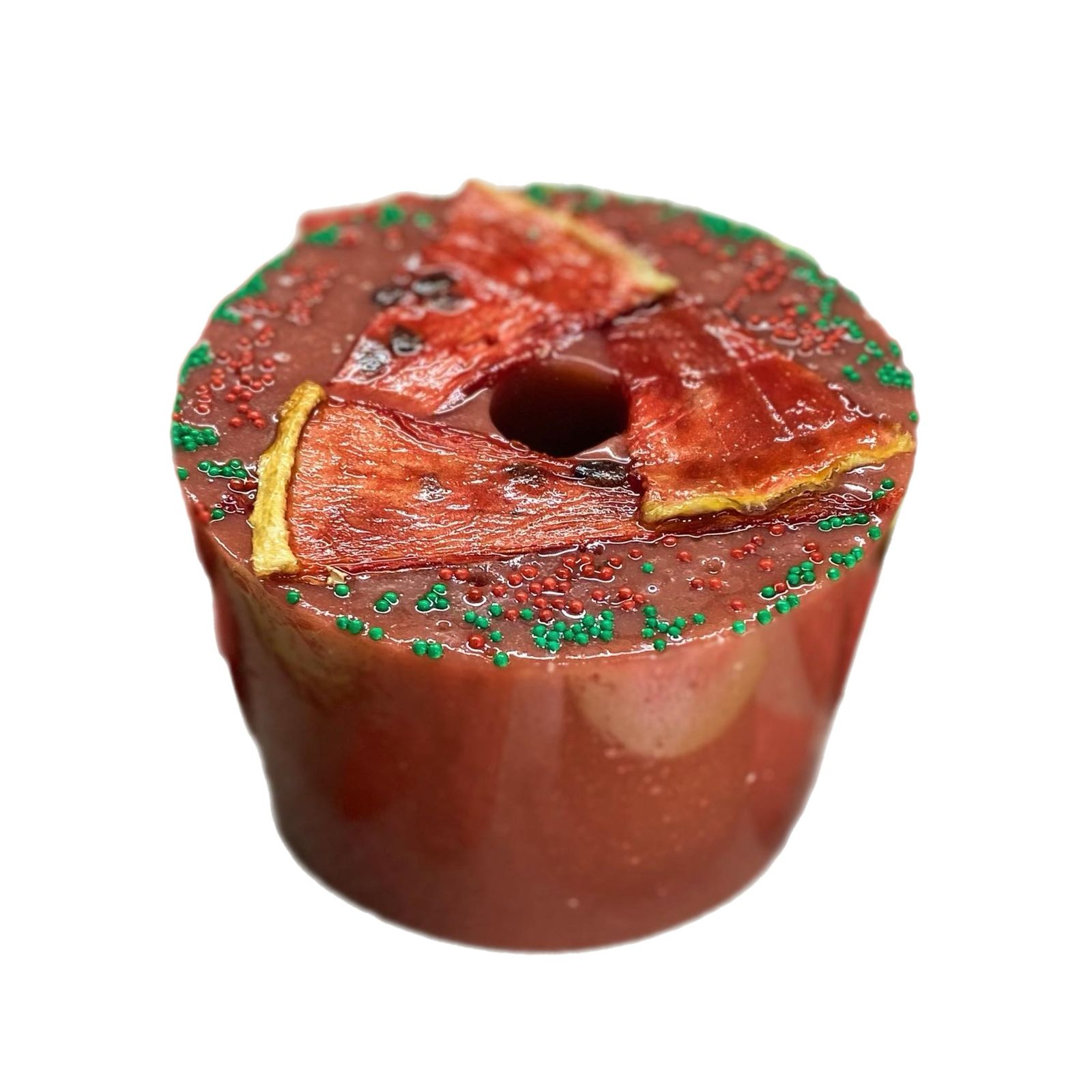 Состав: сахар, арбузный сироп, сушеный арбуз, кукурузный крахмал, вода, кондитерская посыпка (сахар, кукурузный крахмал, натуральные красители).