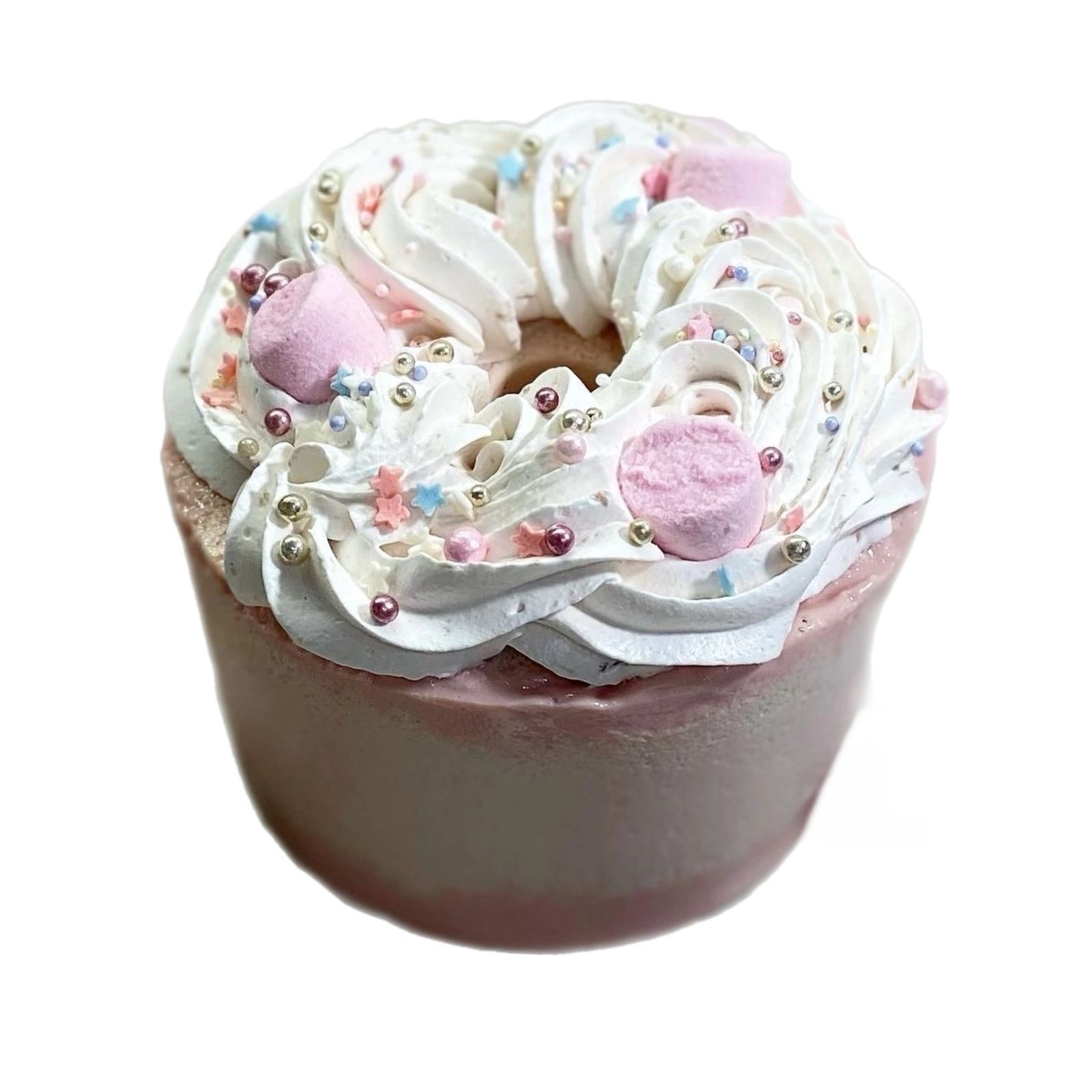 Состав: сахар, клубничный сироп (клубника, вода, стевия), сушёная клубника, кукурузный крахмал, кондитерская посыпка (сахар, кукурузный крахмал, натуральные красители).