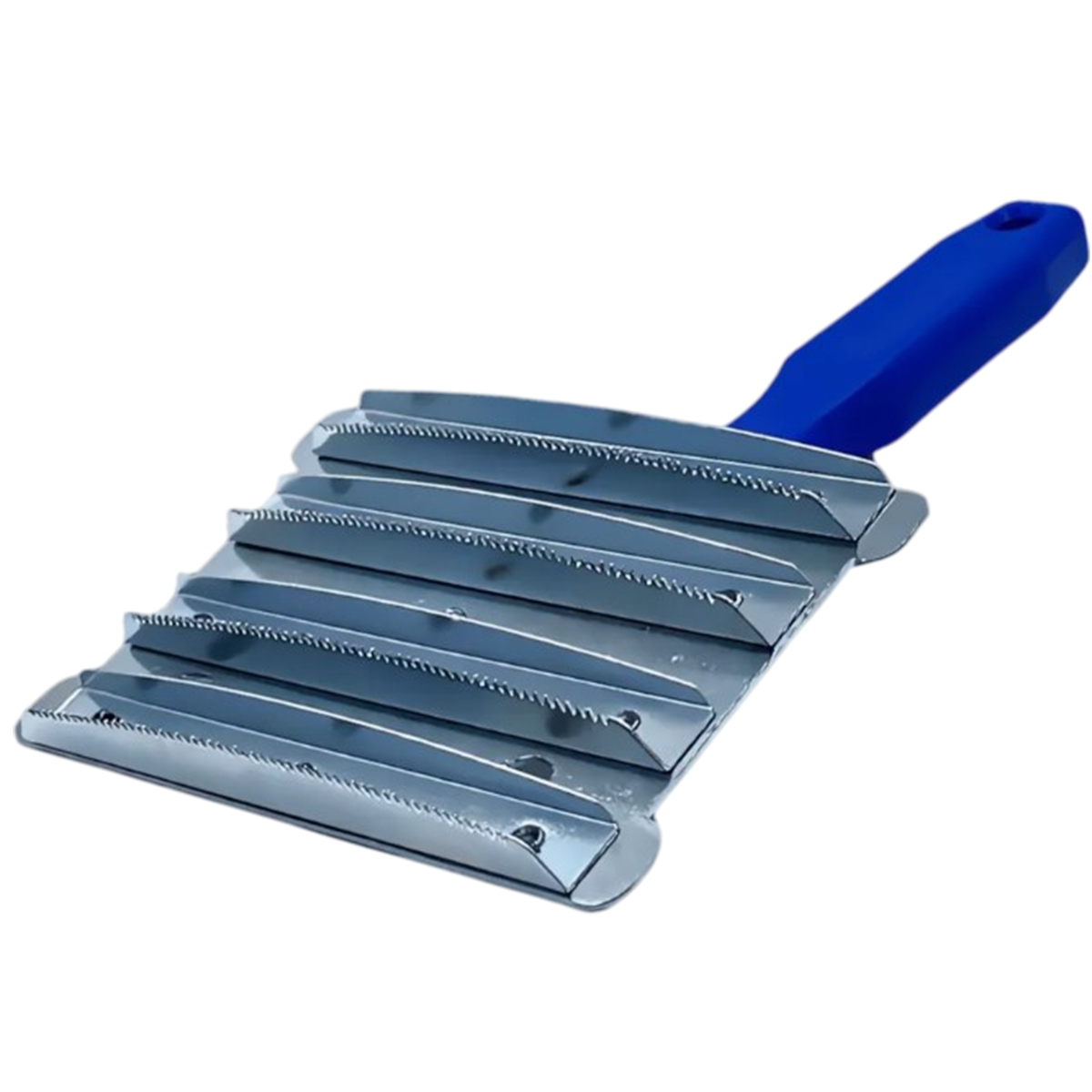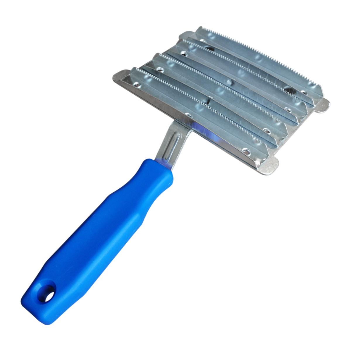 Скребница металлическая мелкозубчатая с пластиковой ручкой
