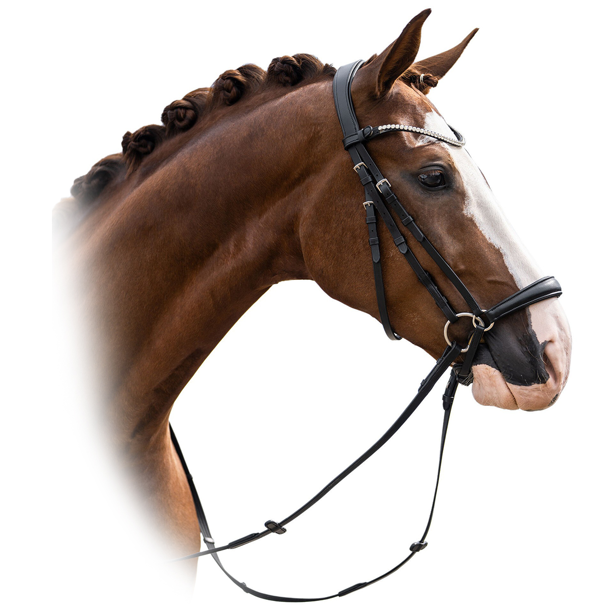 Изогнутый налобник, украшенный сверкающими стразами, придаёт образу неповторимый шарм.