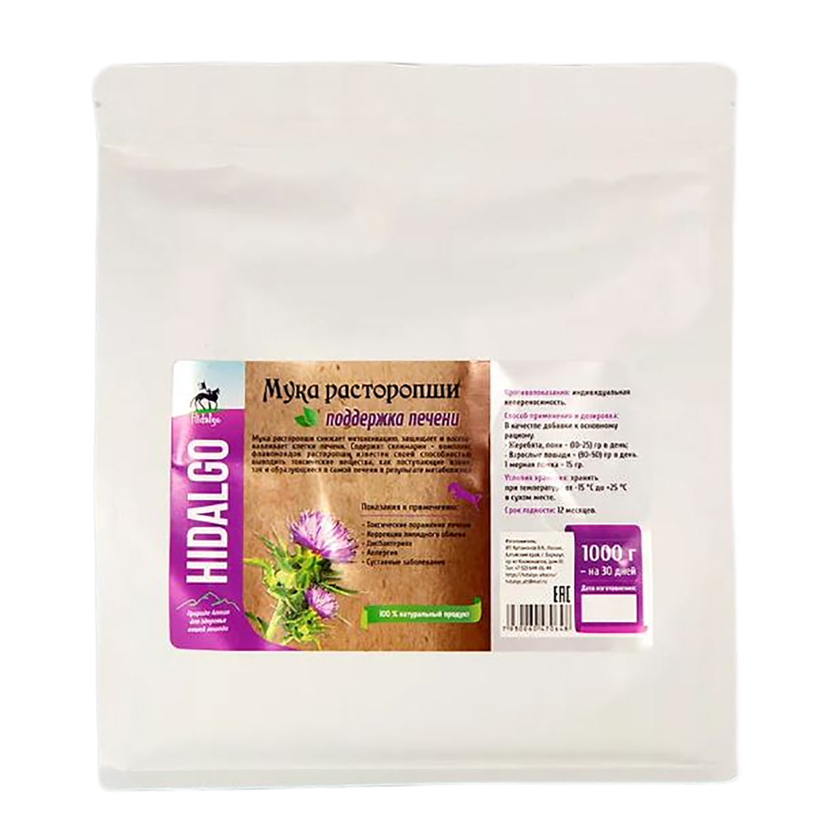 Мука расторопши пятнистой – снижает интоксикацию, защищает и восстанавливает клетки печени.