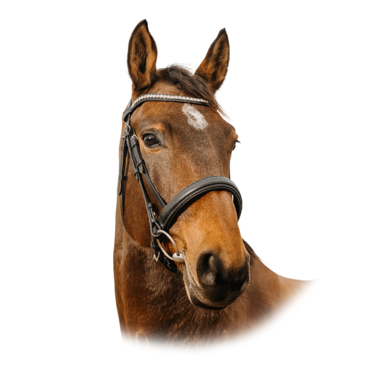 Анатомический налобник украшен стразами. Его эргономичная форма обеспечивает оптимальное прилегание и не создает лишнего давления. Это не просто элемент конного снаряжения, а символ утонченного вкуса и заботы о комфорте животного.