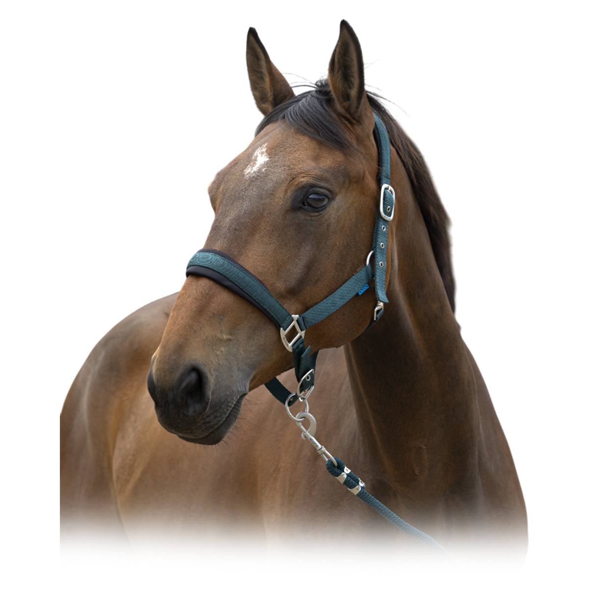 Комфортный недоуздок: широкая неопреновая подложка на затылке и переносье обеспечивает дополнительный комфорт и предотвращает натирание. Регулируется по обхвату морды и на затылке, для идеальной посадки.