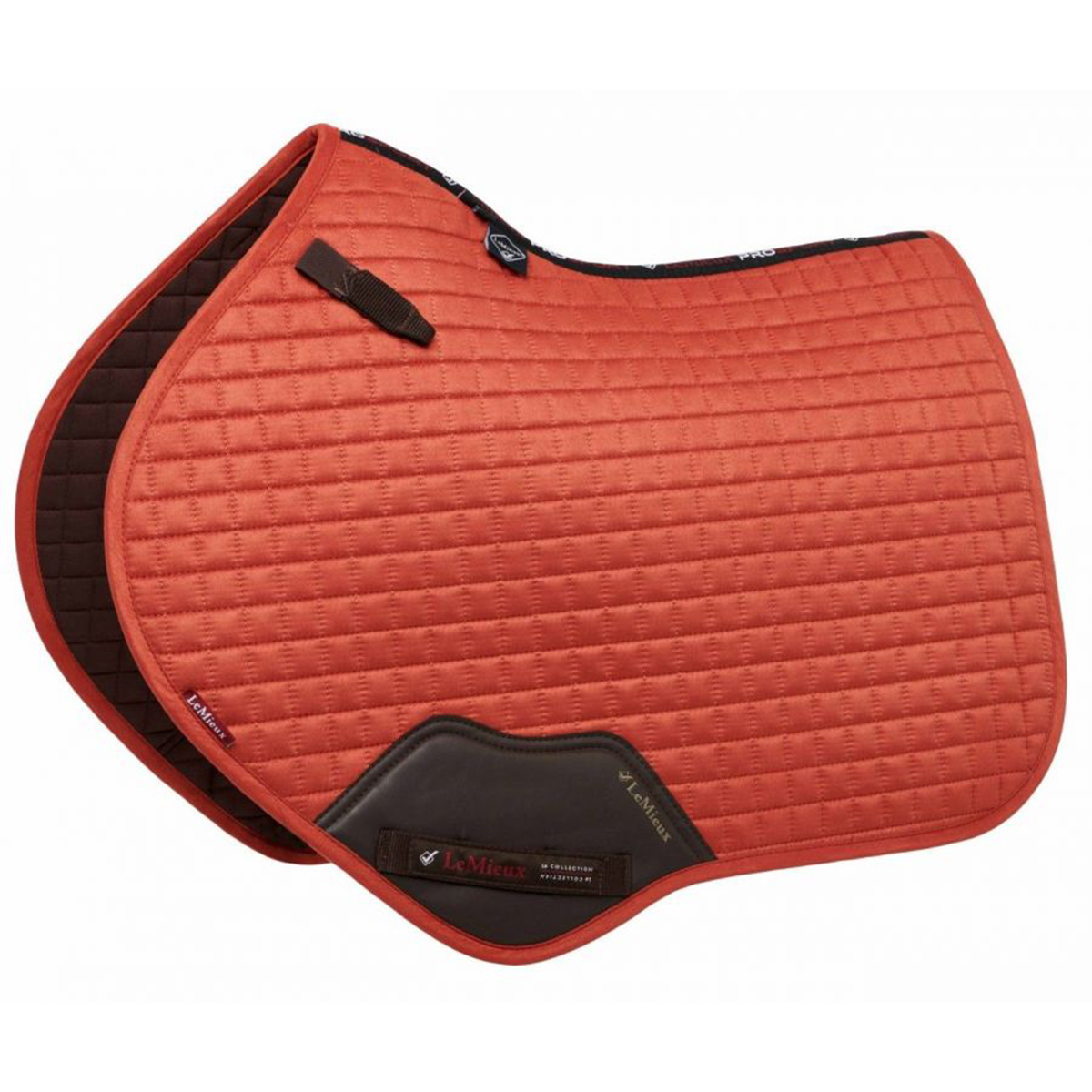 Вальтрап украшен металлическим логотипом LeMieux на кожаной основе.
