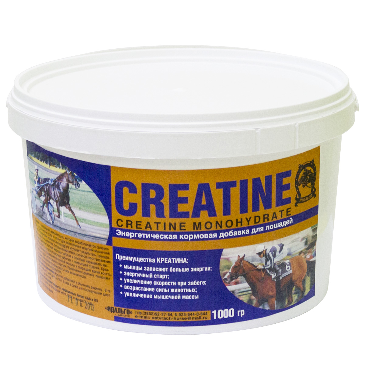 Энергетическая кормовая добавка для лошадей. Креатин - натуральная аминокислота, которая вырабатывается организмом естественным путем и служит для обеспечения энергией мышечной ткани. Применение креатина моногидрата улучшает результаты тренировок, скоростные качества, силовые показатели, скорость восстановления. Креатин ускоряет потерю жировых запасов и помогает наращивать мышечную массу, которая позволяет работать с наивысшей отдачей. Креатин сдерживает выделение молочной кислоты и сокращает время восстановления после интенсивной нагрузки. Применение креатина дает дополнительную энергию, что позволяет лошадям максимально реализовать свои возможности.