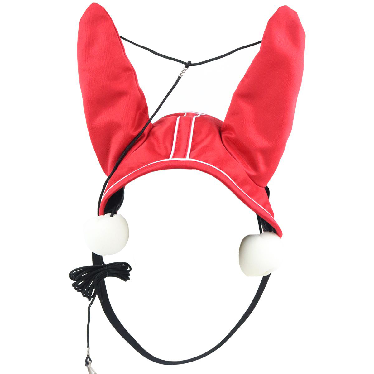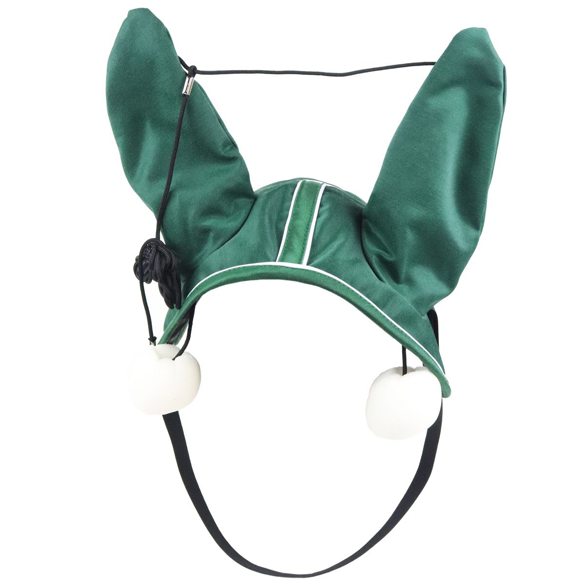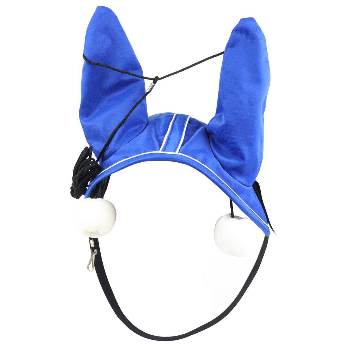 Наушники из полиэстера для рысаков с "телефоном". Применяется для ограничения слуха. При необходимости поролоновые вкладки в уши ("телефоны") легко вынимаются наездником с помощью шнуров. Регулируются ремешком на липучке для удобного крепления вокруг челюсти.