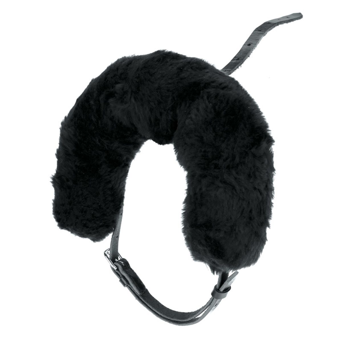 Муфта плотно прилегает к голове лошади. Она ограничивает поле зрения лошади, помогает управлять близорукими и пугливыми лошадьми.