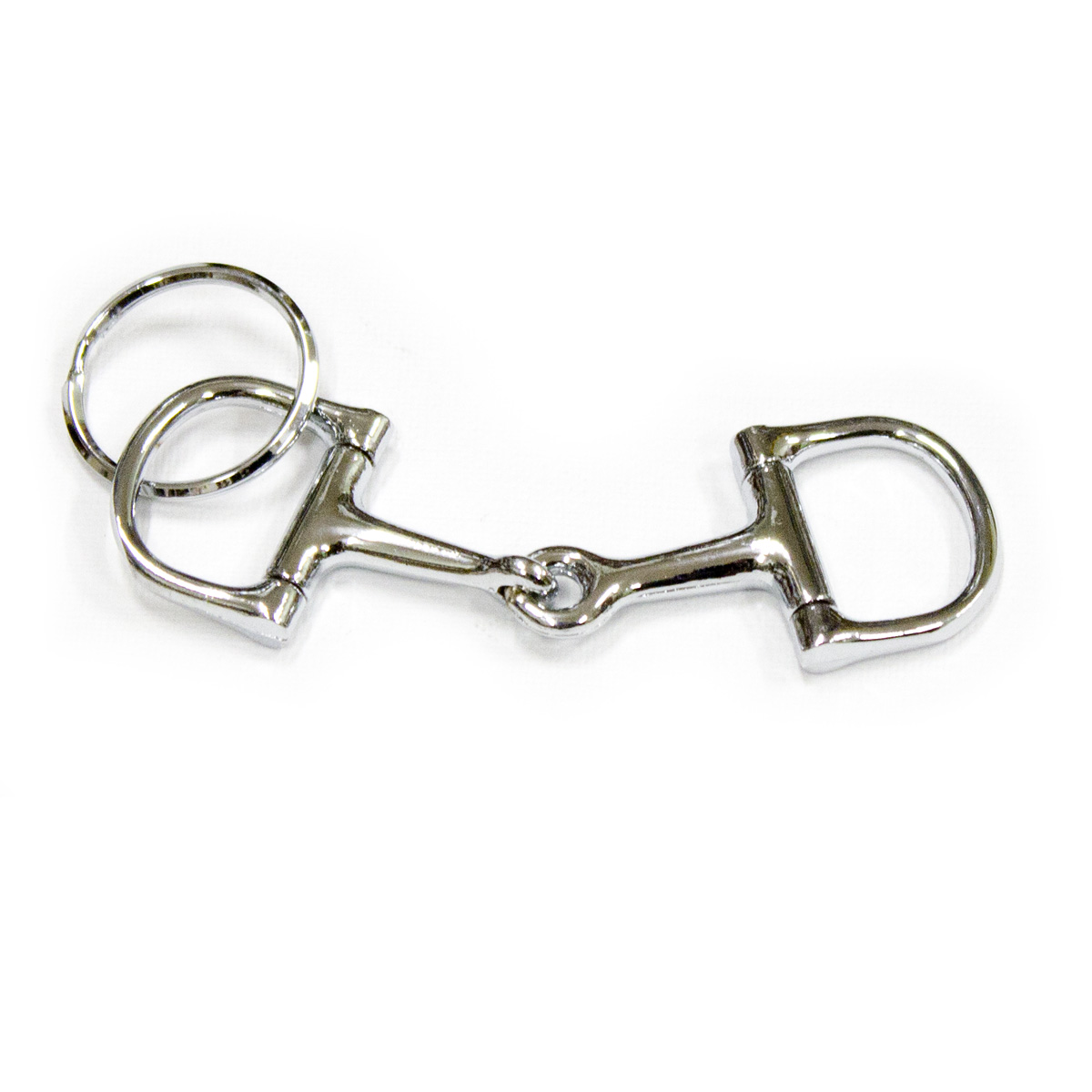 Серебристый металлический брелок в виде трензеля.