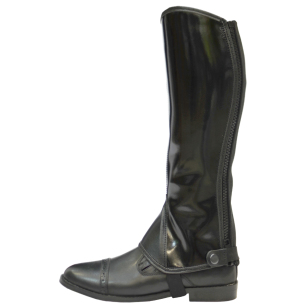 Изготовлены из прочной натуральной кожи с нанесенным защитным покрытием. Снабжены эластичной вставкой по всей длине, что обеспечивает плотное прилегание краги. В нижней части присутствует защитный язычок, что позволяет носить краги не только с ботинками для верховой езды, но и с любой другой обувью (кроссовки и т. п.)