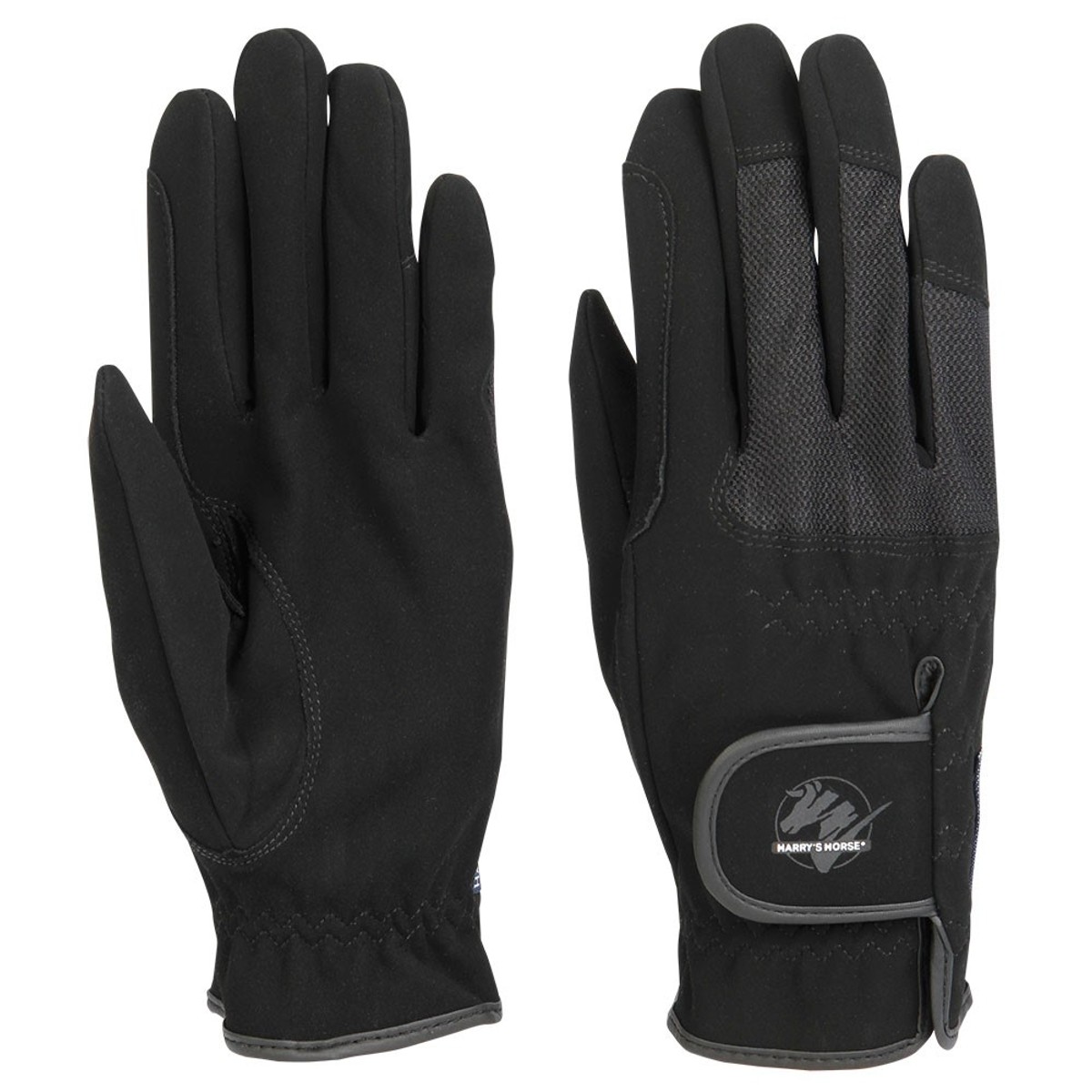 Удобные перчатки (riding gloves) из искусственной замши. Эластичные вставки предоставляют свободу движениям всадника. На запястье застегиваются на липучку. Перчатки имеют усиление в области указательного пальца для лучшего сцепления с поводом.