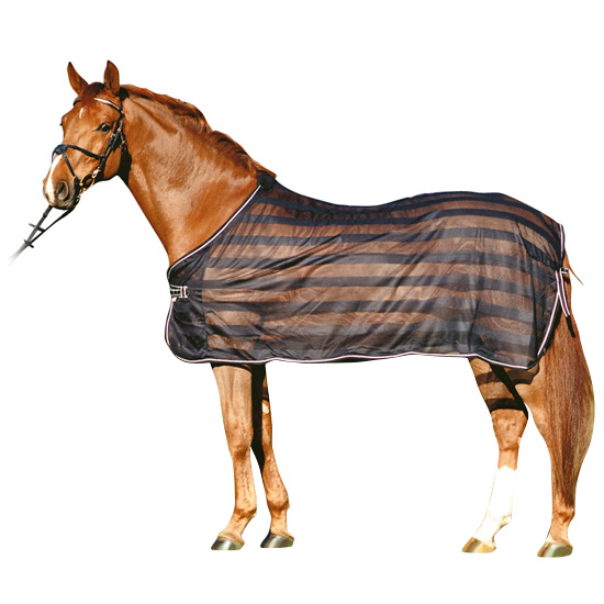 Летняя противомоскитная попона (Anty-fly Rug) из дышащего прочного материала обеспечивает эффективную защиту лошади от насекомых. Для предотвращения натирания шеи лошади на холке имеется флисовая вставка. Материал попоны легок в уходе.