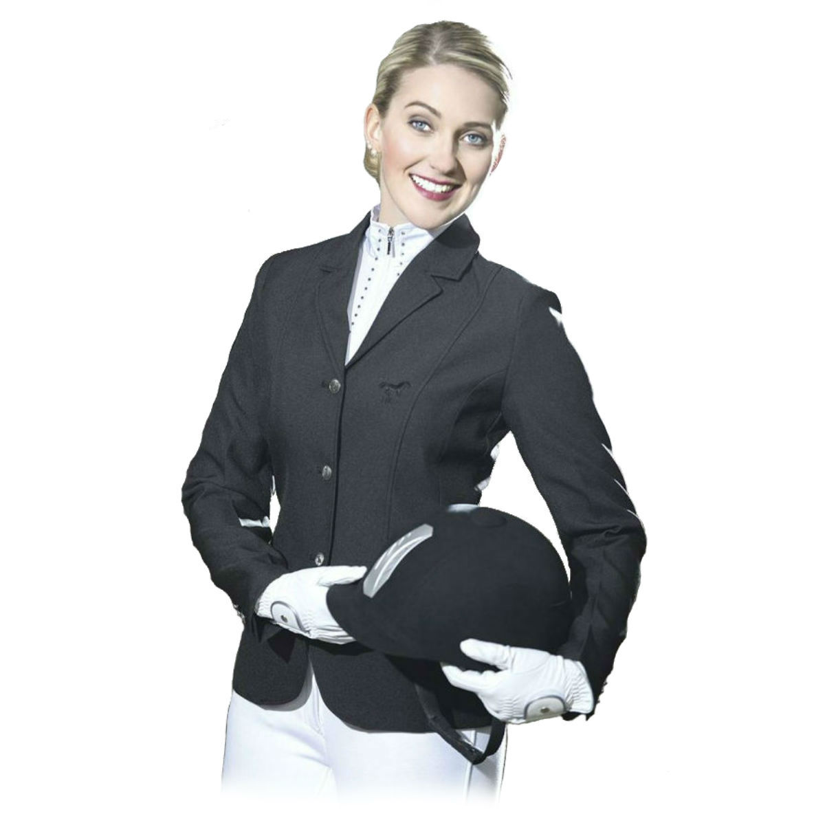Элегантный приталенный редингот для выступлений. На груди вышивка "лошадка". Спереди на трёх пуговицах. С боковыми карманами и двумя шлицами сзади. На пуговицах выгравирована фигура лошади.