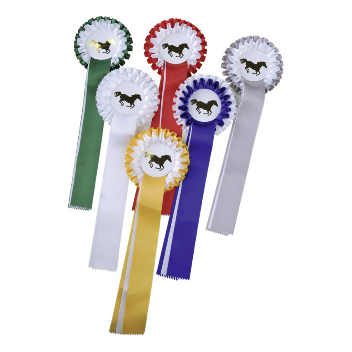 Наградная розетка с двойной каймой. Можно прикрепить с помощью крючка к уздечке лошади.