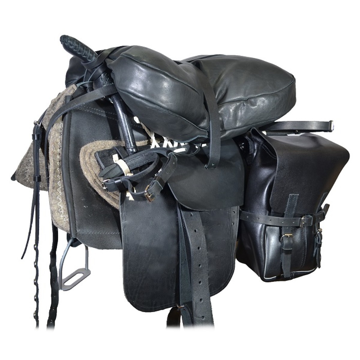 В комплект входит: головка седла с подушкой - 1 шт., путлища на 35 мм - 1 пара, скашовка со стременами - 1 шт., подпруга кожа с соединительным ремнем - 1 пара, пахва - 1 шт., подперсье кожа - 1 шт., потниковая крыша (кожа) - 1 шт., потник - 1 шт., узда - 1 шт., повод - 1 шт., трок - 1 шт., задние переметные сумки - 1 шт., вьючные ремни - 4 шт.