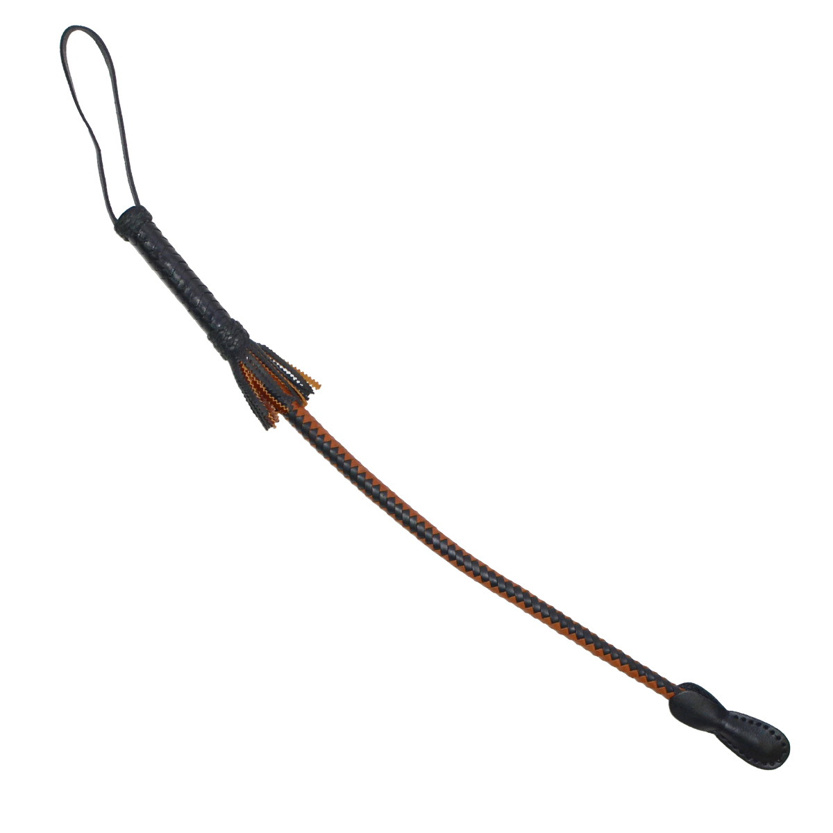 Нагайка изготовлена вручную по старинным технологиям. Кубанская нагайка имеет длинну рукояти примерно 15-20 сантиметров. Рукоятка плавно переходит в плетение, как бы входит в саму плеть, и зримого окончания рукоятки и основания самой плети нет. Материал плети и рукоятки натуральная кожа, ручка украшена бахромой. Нагайка станет хорошим подарком для вашего начальника или друга.