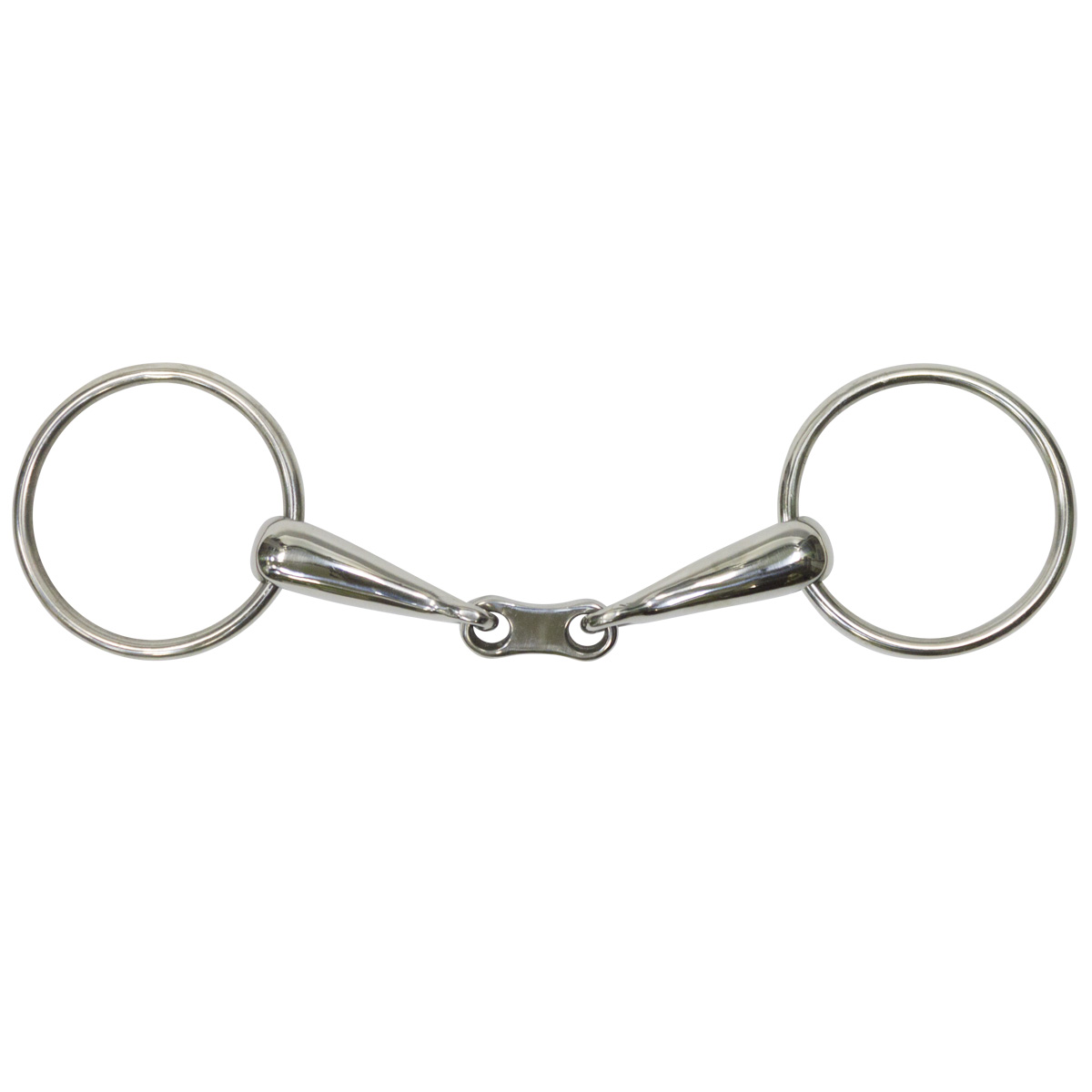 Трензель "восьмерка" с плоской серединой (Double Jointed Loose Ring Snaffle) сделан из гладкой полированной нержавеющей стали. Трензель с плоской "восьмеркой", которая делает его чуть строже, позволяет добиться от лошади большего послушания, но в то же время он не будет раздражать ее или травмировать.