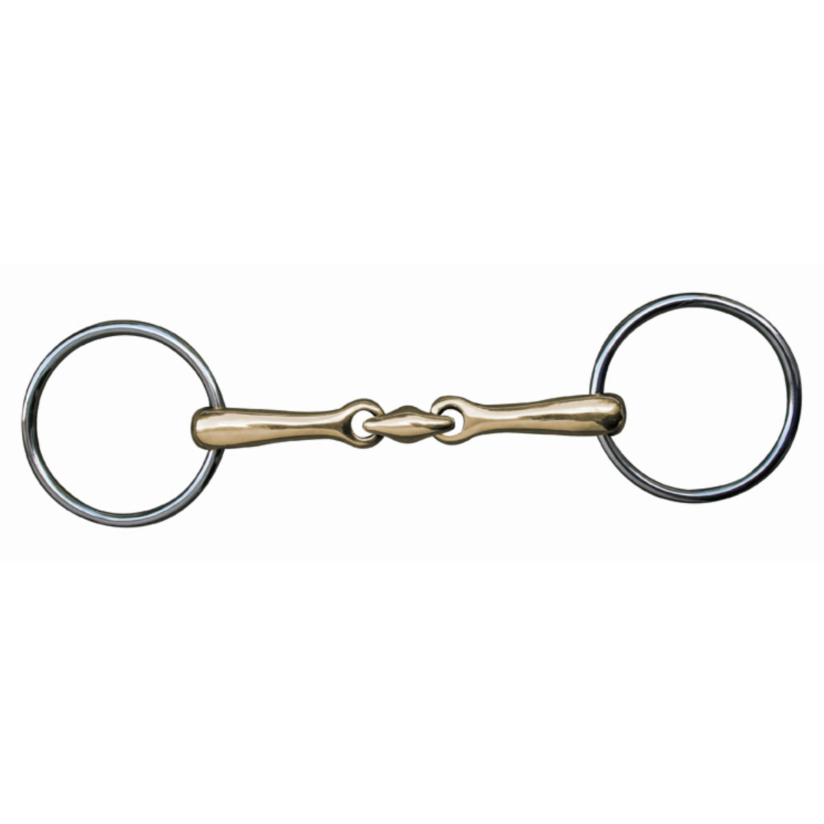 Трензель «восьмерка» из аргентана (snaffle). Аргентан – сплав меди, никеля и цинка, также его называют новое серебро, альпака. Материал аргентан твердый и устойчивый к коррозии, по своим свойствам сравним с высококачественной сталью. Грызло из аргентана способствует обильному слюноотделению благодаря более приятному вкусу, провоцируя лошадь лучше отжевывать трензель во время работы. Восьмерка распределяет давление на язык и рот одинаково с обеих сторон.