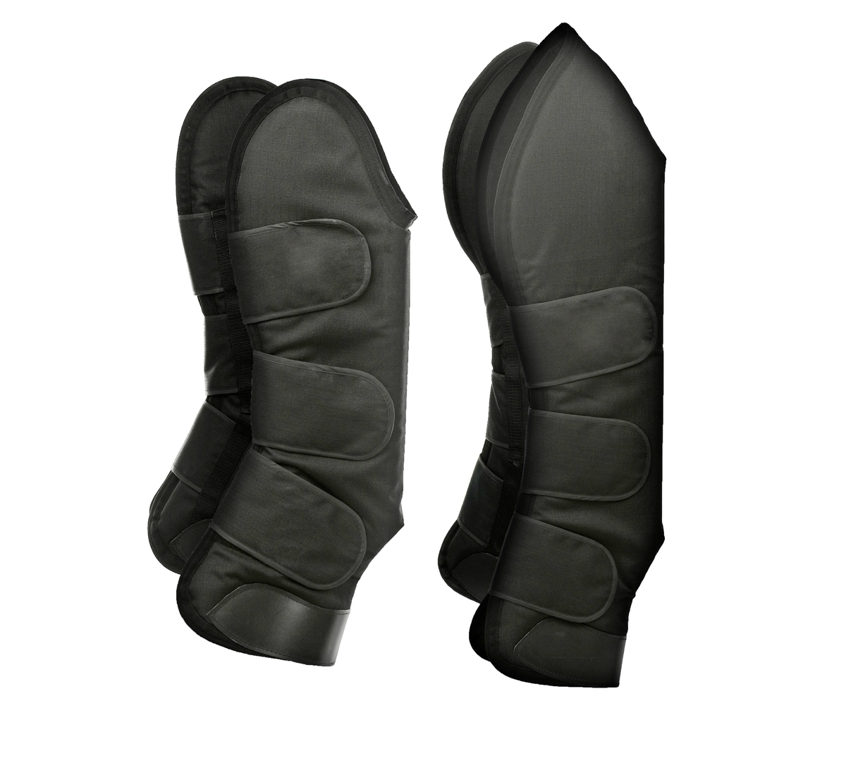 Утолщенные транспортные ногавки анатомической формы. Твёрдое пластиковое покрытие в области копыт. Закрываются при помощи удобных липучек. Защищают ноги лошади от холода, ударов, камней и грязи во время транспортировки. Благодаря тефлоновому покрытию, поверхность ногавок является непродуваемой и непромокаемой, и в то же время хорошо проводит воздух. Флисовая подкладка.