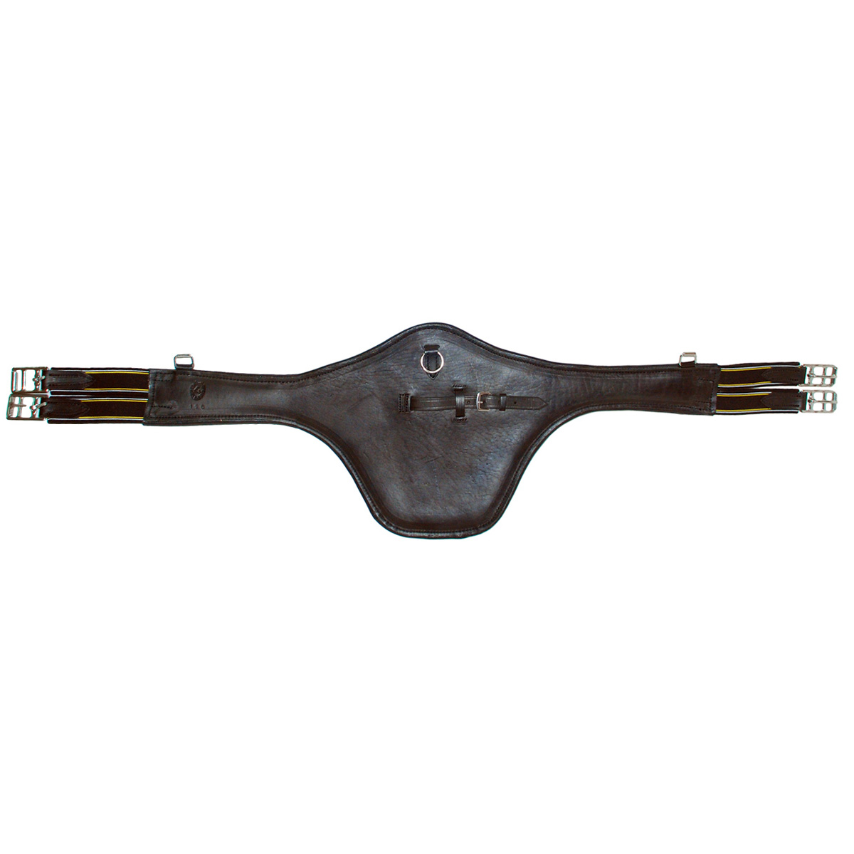 Подпруга кожаная с нагрудником рекомендуется для конкурных и троеборных седел. Широкий нагрудник защищает живот лошади от ударов и ушибов. Пряжки из нержавеющей стали. С обеих сторон на резинках. По бокам и по центру имеются кольца для крепления дополнительного снаряжения.