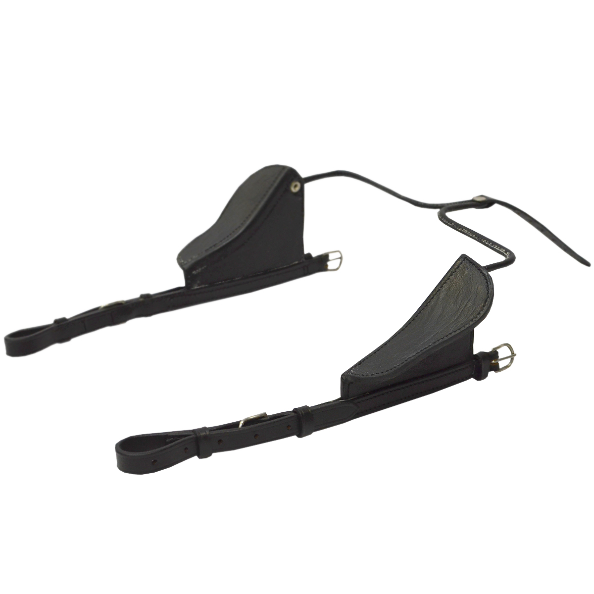 Шоры (blinders) полузакрытые, используются для ограничения области зрения лошади, чтобы лошадь не отвлекалась на посторонние явления по бокам дороги. Крепятся к нащечным ремням, применяют для пугливых или нервных лошадей.