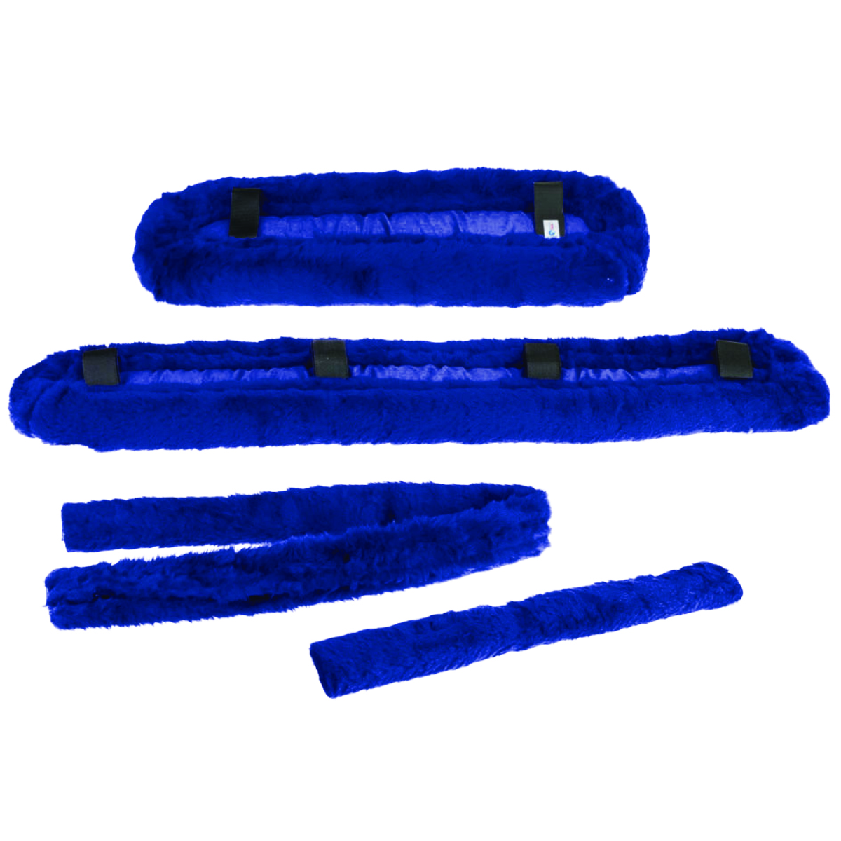 Меховушки из искусственного меха высокого качества предотвращают натирание частей тела лошади амуницией. В набор входят: подкладка под подпругу, подкладка под седелку, чехол на нагрудник, чехол на капсюль. Подкладки для седелку и подпруги застегиваются на липучки.