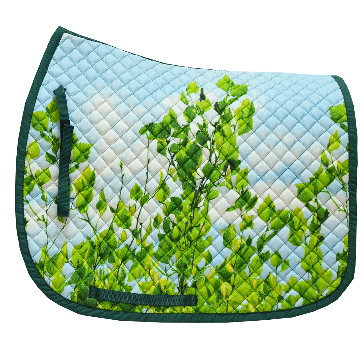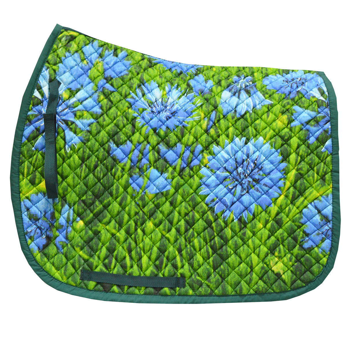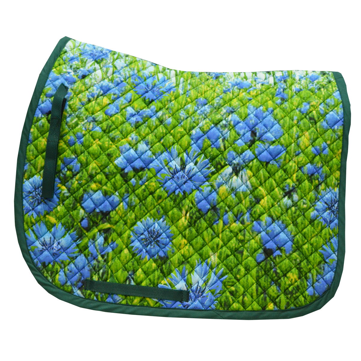 Универсальный вальтрап (All-Purpose Saddle Pad) анатомической формы с "весенним" принтом. Вальтрап украшен мелкой стежкой. Размер стежки - 2 см х 2 см. Вальтрап хорошо держит форму и легок в уходе. Благодаря тонкому слою наполнителя вальтрап не перегревает спину лошади, при этом прекрасно справляясь с амортизацией. Крепится на липучки.