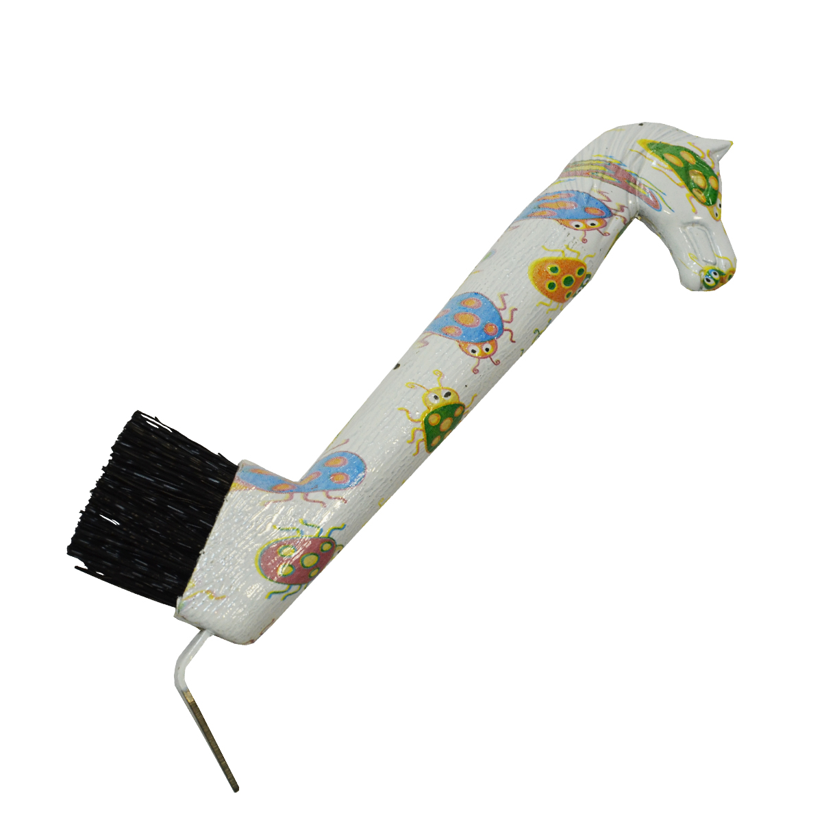 Крючок и щетка для копыт с пластиковой рукояткой в виде головы лошади.