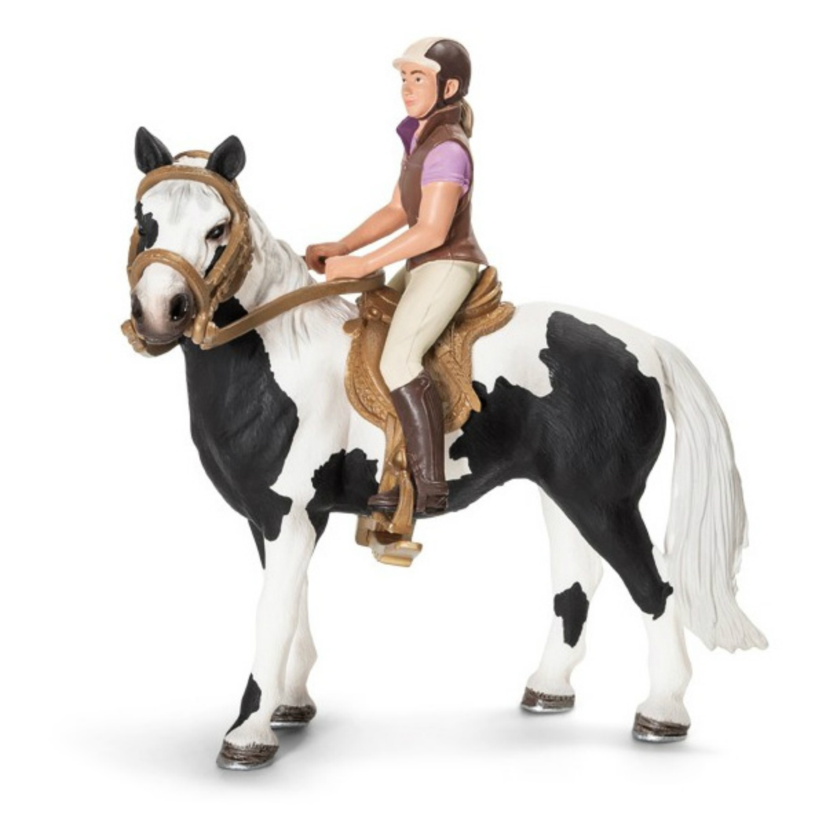 Набор для верховой езды можно использовать с различными лошадками из коллекции Schleich. Если вы любите лошадей и коллекционируете все, что связано с ними, этот набор будет великолепным дополнением. Миниатюрный недоуздок, седло, оголовье и попона в точности повторяет оригинал аммуниции для лошади, а всадник идеально дополняет образ (лошадь в комплект не входит). Теперь у вашей лошади будет заботливый друг и наездник.