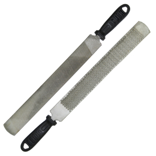Недорогой копытный рашпиль (hoof rasp) с крупной и мелкой насечкой. Острота и глубина насечки влияет на аккуратность обработки копыта. Для финишной обработки копыта используется сторона с более мелкой насечкой.