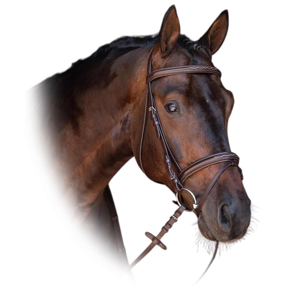 Стильное и качественное оголовье эконом-класса из натуральной кожи (Leather Bridle). Налобный ремень и капсюль украшены белой декоративной строчкой. Тесьмяный повод с кожаными ограничителями в комплекте.