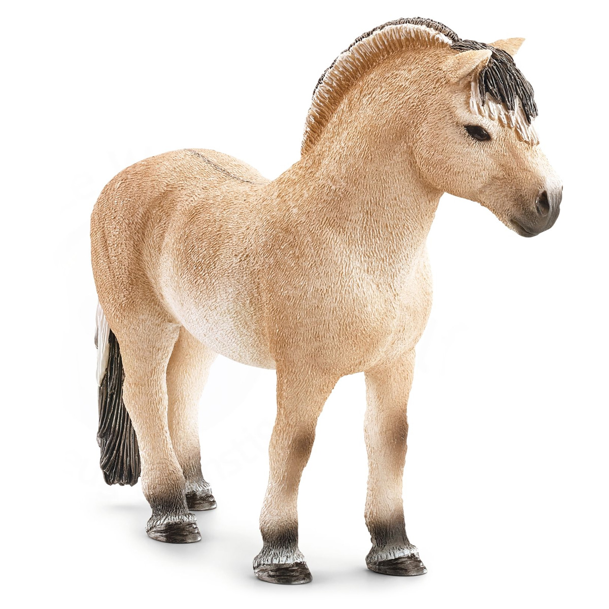 Считается, что эти лошади пришли в Скандинавию более 4000 лет назад и были одомашнены около 2000 г. до н.э. В давние времена фьордский пони был верховым конем викингов и пользовался популярностью по всей Скандинавии. Суровый горный климат способствовал возникновению пони, идеально приспособленному к окружающей среде. Он могучий и мускулистый, имеет короткие сильные ноги с твердыми копытами. В течение многих веков его врожденный уверенный шаг, сила, выносливость и отменное здоровье делали его незаменимым помощником фермеров. Одним из примечательных качеств фьордского пони является необычайный окрас хвоста и гривы: золотистый цвет с черной полосой по гребню. Грива традиционно стрижется так, чтобы внутренний черный волос был длиннее внешнего золотистого. Высота фьордского пони 132-142 см. Окрас золотисто-палевый с черными волосами по гребню гривы, на хвосте и челке, а также на ногах. Строение тела: характерная голова пони с широким лбом и маленькими ушами; мускулистая шея; сильное глубокое туловище; низко по