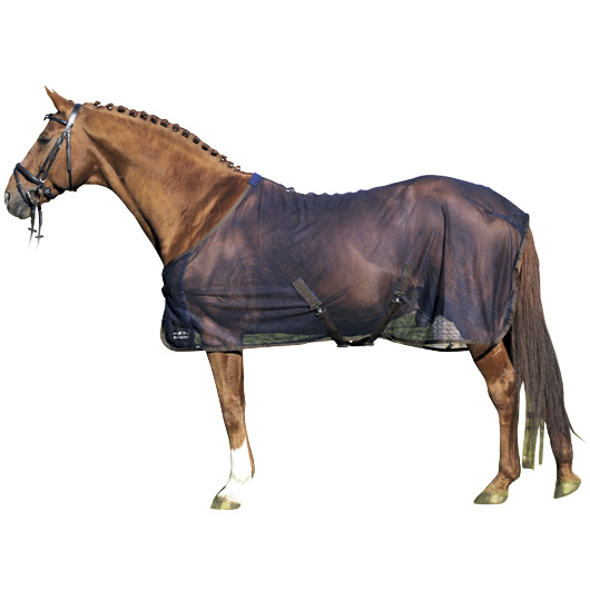 Летняя противомоскитная попона (Anty-fly Rug) из дышащего прочного материала обеспечивает эффективную защиту лошади от насекомых. Попона благодаря наличию подбрюшных ремней и ремня для хвоста плотно прилегает к частям тела, поэтому не будет соскальзывать. Для предотвращения натирания шеи лошади на холке имеется флисовая вставка. Материал попоны легок в уходе.