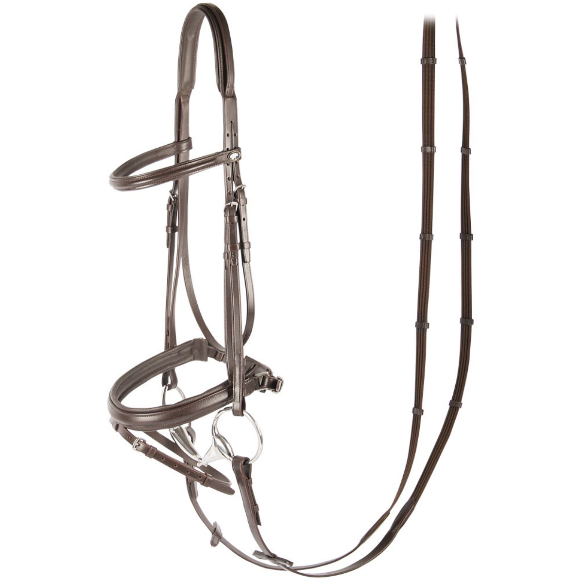 Оголовье из качественной кожи с самозатягивающимся капсюлем. В комплект входит тесьмяный повод с ограничителями. Подкладка капсюля и налобного ремня сделана из мягкой кожи, что обеспечивает максимальный комфорт вашей лошади. Все пряжки сделаны из нержавеющей стали. Трензель в комплект не входит.